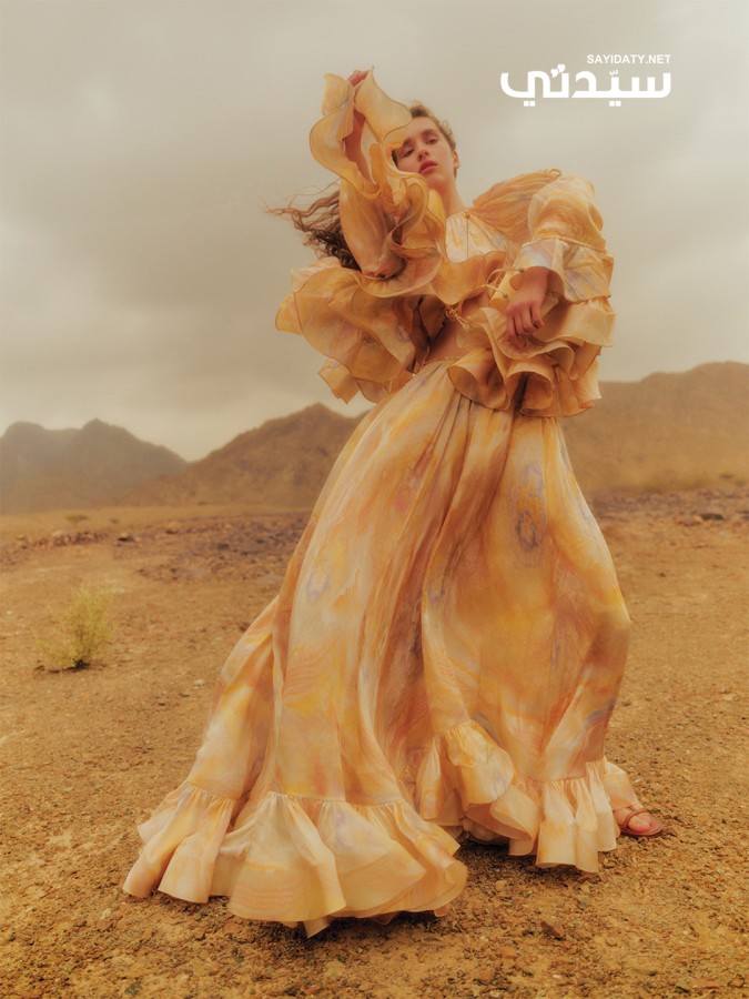 قد يكون من أبرز الإنجازات لعام 2025، مشروع «عزّنا بطبعنا» الذي أطلقته «سيدتي» بالتعاون مع «فنون التراث»؛ بمناسبة اليوم الوطني السعودي الـ95، احتفاءً بالهوية السعودية بوصفها قيماً متجذّرة تُعاش ولا تُرفع كشعارات. إذ كان للأزياء دور كبير في إيصال الفخر بالجذور والأصالة، شملت الحملة غلافين للنسخة الرقمية: الغلاف الأول جاء بالتعاون مع سارة المطلق، الموهبة السعودية والقيّمة الفنية المساعدة في الجناح الوطني السعودي في بينالي البندقية للعمارة 2025؛ حيث ظهرت بإطلالة من تصميم المصممة السعودية مشاعل الفارس، في عمل بصري يعكس الحوار الثقافي بين السعودية والعالم.