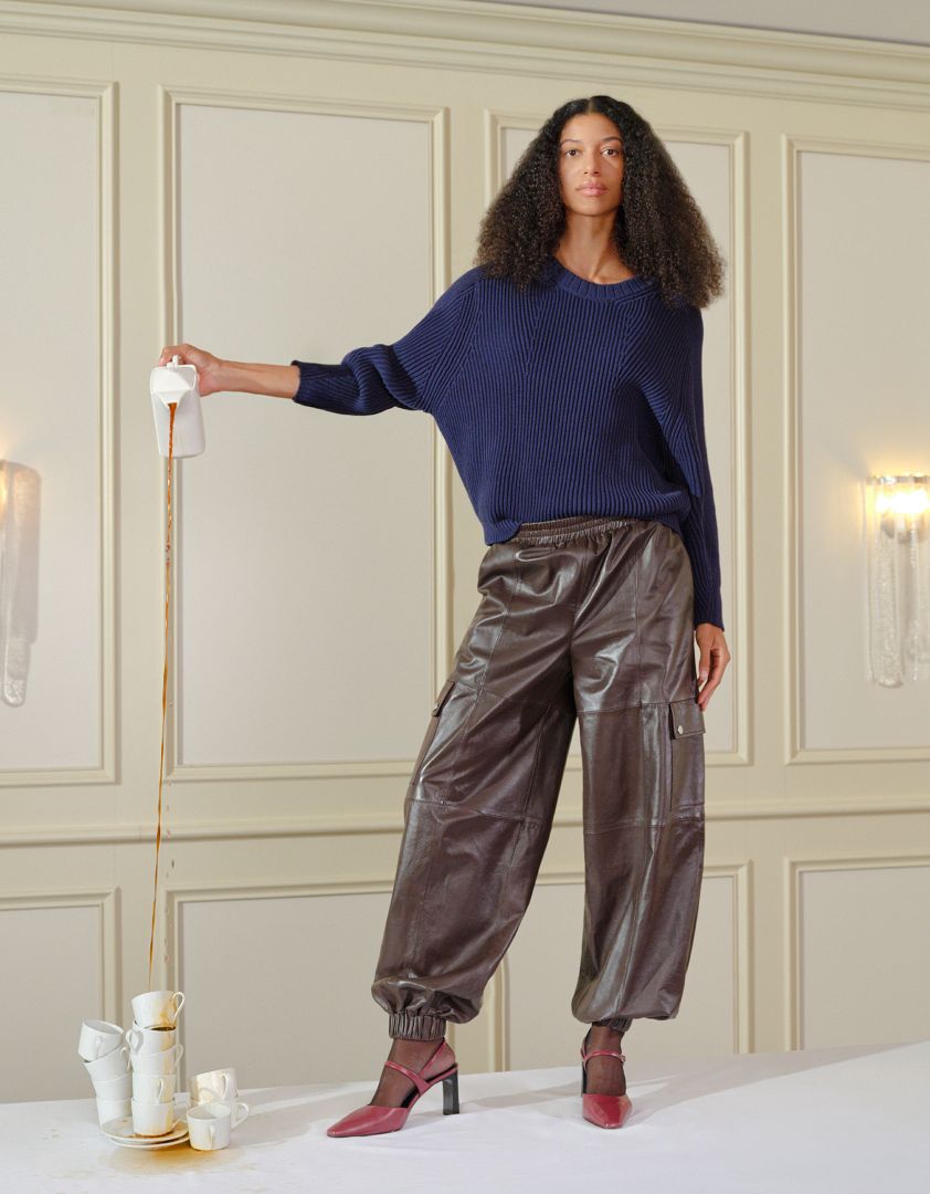 كان هناك إجماع بين المصممين على منصات عروض أزياء عام 2026 على أن اللون الأزرق هو اللون الرائج الجديد. وقد رصدناه في عروض Attico وتوري بورش Tory Burch، وسان لوران Saint Laurent، وفيكتوريا بيكهام Victoria Beckham. إنه لون جريء يُضفي لمسة مميزة بحد ذاته، كما أنه يتناغم بشكل رائع مع الألوان الترابية الغنية مثل الباذنجاني، والعنابي، والبني الشوكولاتة والأصفر العسلي كما في عرض المصممة لورا بياجيوتي Laura Biagiotti.
