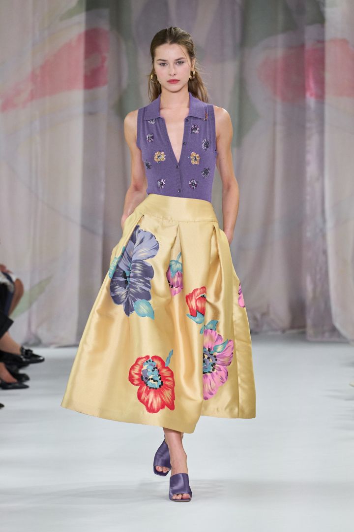 لا يزال عشق عالم الموضة للون الأصفر الزبدي في أوجه، وفي عام 2026، يُنسق هذا اللون بأسلوب أنيق وراقٍ مع البني الكاراميل. من القواعد الأساسية لتنسيق الألوان أن تستلهمي الأفكار من حياتنا اليومية، ولذا، ليس من المستغرب أن يتناغم لونا الأصفر والخردلي معاً في إطلالة واحدة كما في عرض فكتوريا بيكهام. كما تضفي تركيبة الأصفر الزبدي والخردلي والبني معاً عمقاً ودفئاً يكملان نعومة الأصفر الزبدي. عززي التباين باستخدام خامات مختلفة لتجنب أن تبدو الإطلالة باهتة كما في عرض فيليب بلاين Phillip Plein.