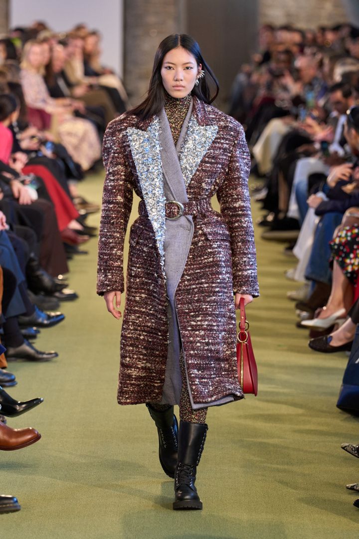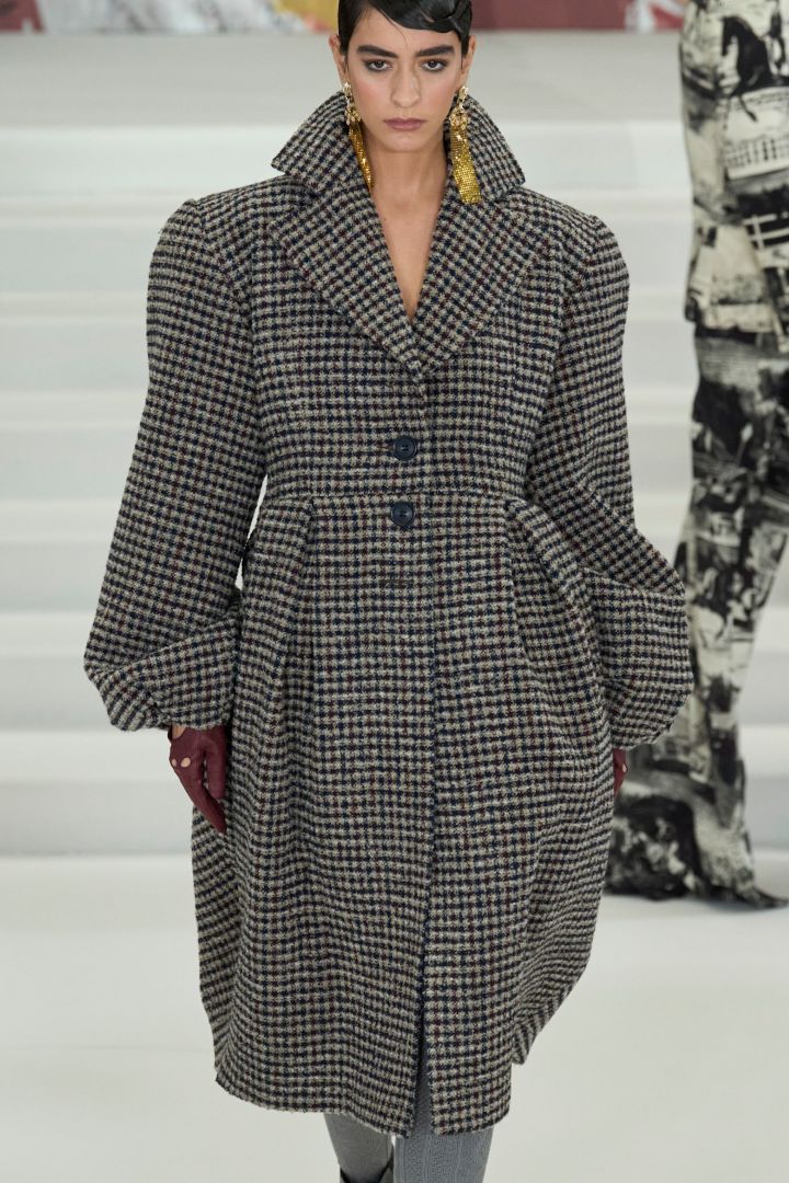 ويمكنك أن تختاري التدثر بالمعطف الرمادي الصوفي من الموهير بقصة طويلة مستطيلة، وتزيني ياقته بالفرو الصناعي الأصفر أو الأحمر أو الأبيض لمزيد من الرقي، وهو معطف يليق بالأزياء المونوكرومية فقط. يمكنك تنسيق بدلة من القماش الجاكارد المربع التقطيع تحته ولا تنسي السلاسل المتفاوتة في الطول من الفضة أو الذهب الأبيض.