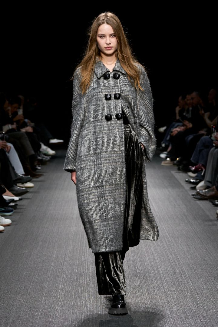 نسّقي معطفاً رمادياً مع المخمل الأسود والأحذية الرياضية لإطلالة كاجوال، أو مع الفساتين الطويلة للمناسبات الرسمية. اعتمدي إطلالات أحادية اللون أنيقة بدرجات مختلفة من الرمادي؛ أضيفي لمسات لونية مميزة بالأكسسوارات أو نسّقيه مع قطع باللونين الأبيض والأسود، وتلاعبي بالخامات المختلفة كالجلد أو الصوف المحبوك لإضفاء عمق على إطلالتك واستعيني بصيحة التكديس. نسقي المعطف الرمادي مع سروال المخمل المفضل لديك (فاتح أو غامق) وقميص أبيض أو أسود بسيط، وأكملي الإطلالة بحذاء رياضي أو بوت قصير. أو يمكنك أن تختاري السروال الرمادي الصوفي وكنزة صوفية، وتزيني بأقراط طويلة من الخيوط الذهبية، وانتعلي الحذاء الرياضي الأبيض لإطلالة منعشة وبسيطة.