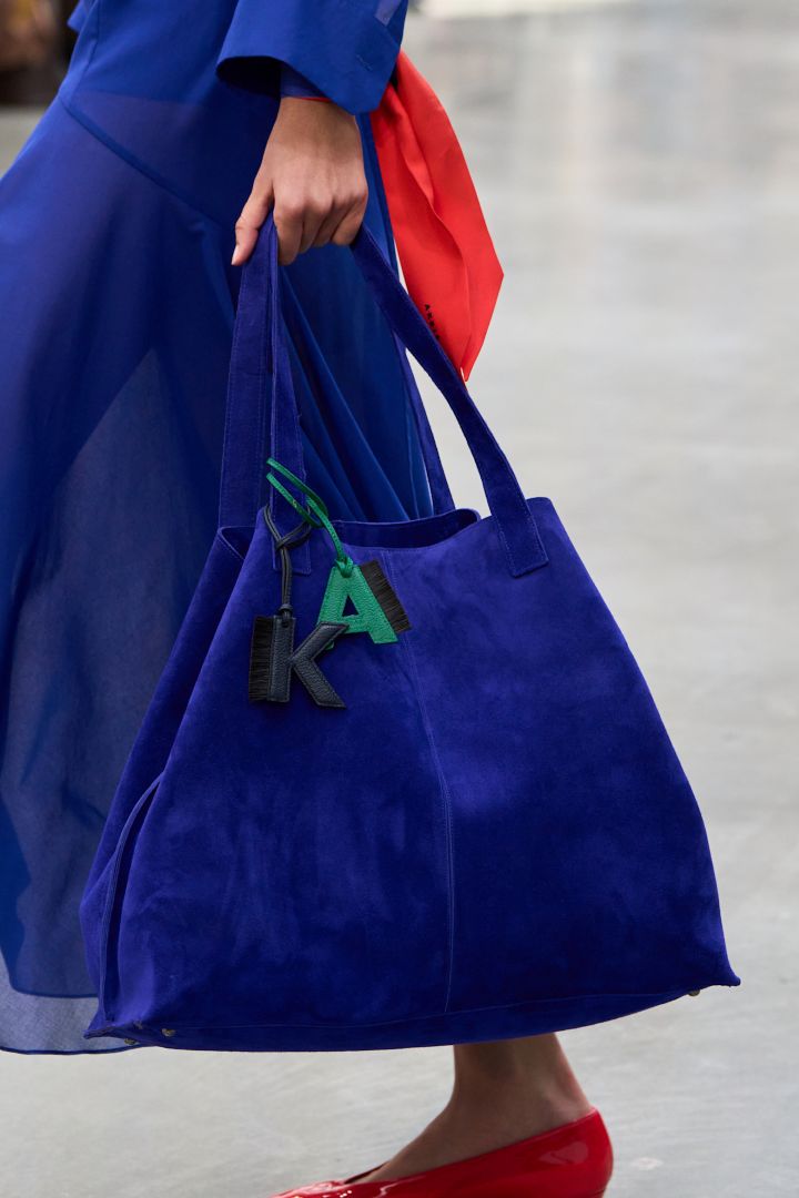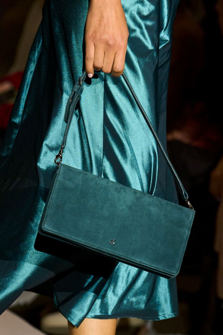 موسكينو Moschino- الصورة من Launchmetrics/Spotlight © - يُعدّ الأزرق الفيروزي الداكن لوناً جريئاً رائجاً، من الأزرق السماوي إلى الكوبالت إلى الكحلي، توقعي رؤية المزيد من درجات اللون الأزرق تزين الأكتاف في عام 2026. تُضفي هذه الحقائب الجريئة من أكريس Akris لمسةً من الألوان الغنية والنابضة بالحياة، سواء كنتِ تميلين إلى الألوان الأحادية والألوان المحايدة، أو تُفضلين مزج الطبعات والأنماط، فالحقيبة الزرقاء تُضفي لمسةً شخصيةً على أي إطلالة. مع وجود خيارات متنوعة في السوق تتراوح بين حقائب اليد الجلدية الكبيرة وحقائب اليد الصغيرة وغيرها، فكِّري في استبدال حقيبة العمل السوداء أو البيج المعتادة بحقيبة زرقاء هذا العام.