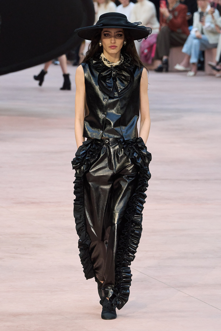 للشابات نرشّح البدلة السوداء المصممة بسترة من دون أكمام، وسروال واسع مزدان بكشاكش على الجانبين من مجموعة دار شانيل Chanel، قطعة عصرية يمكن أن ترافقكِ في المساء. لتنسيقها بالشكل الصحيح انتعلي بوت أسود برقبة قصيرة لا تعلو الكاحل، وارتدي قفازات قصيرة جلد من اللون نفسه، هنا يمكن أن تكون الحقيبة بلون مميز مثل الأحمر أو الأرجواني الدارج.