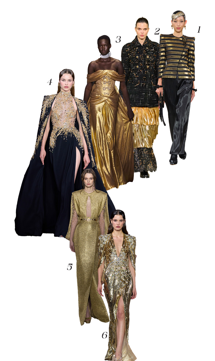 يشهدُ عالمُ الموضةِ موجةً ذهبيَّةً قويَّةً، تتناغمُ مع الطابعِ المكسيمالي السائدِ تحت شعارِ More is More، إذ تجنحُ التصاميمُ اليوم نحو الجرأةِ، والضخامةِ، والقصَّاتِ المنحوتة، وتكون مصحوبةً بعودةِ الذهبِ الأصفر الكلاسيكي على شكلِ قلائدَ سميكةٍ، وأطواقٍ دائريَّةٍ، وأساورَ عريضةٍ مستوحاةٍ من الطرازَين اليوناني والمصري. كذلك يتضمَّنُ هذا الاتِّجاه القطعَ الذهبيَّةَ المستدامةَ التي تُلاقي رواجاً متزايداً. وقد تحوَّلت هذه الموضةُ، التي بدأت خجولةً في منصَّاتِ العروضِ لموسم خريفِ وشتاء 2025-2024، إلى مدٍّ عارمٍ في عروضِ ربيعِ وصيف 2025 الراقية، ومن المتوقَّعِ أن تستمرَّ للعامِ المقبل 2026، فلِمَ تسابقَ المصمِّمون على ابتكارِ فساتينَ مغمَّسةٍ بالذهب؟
