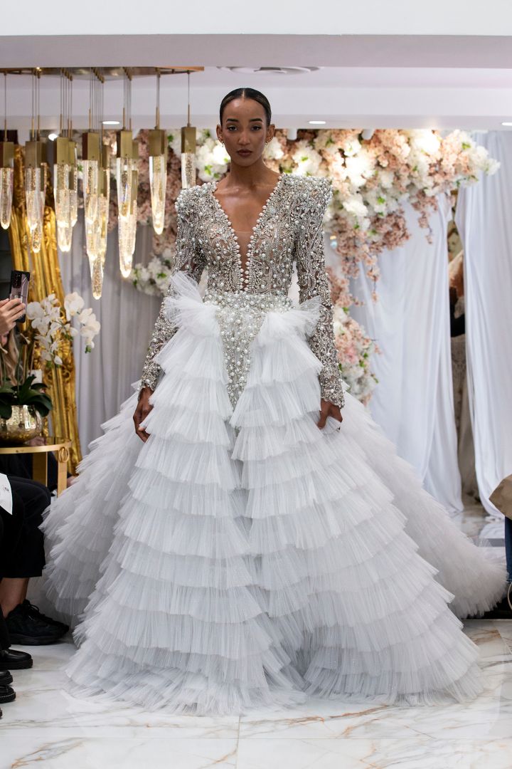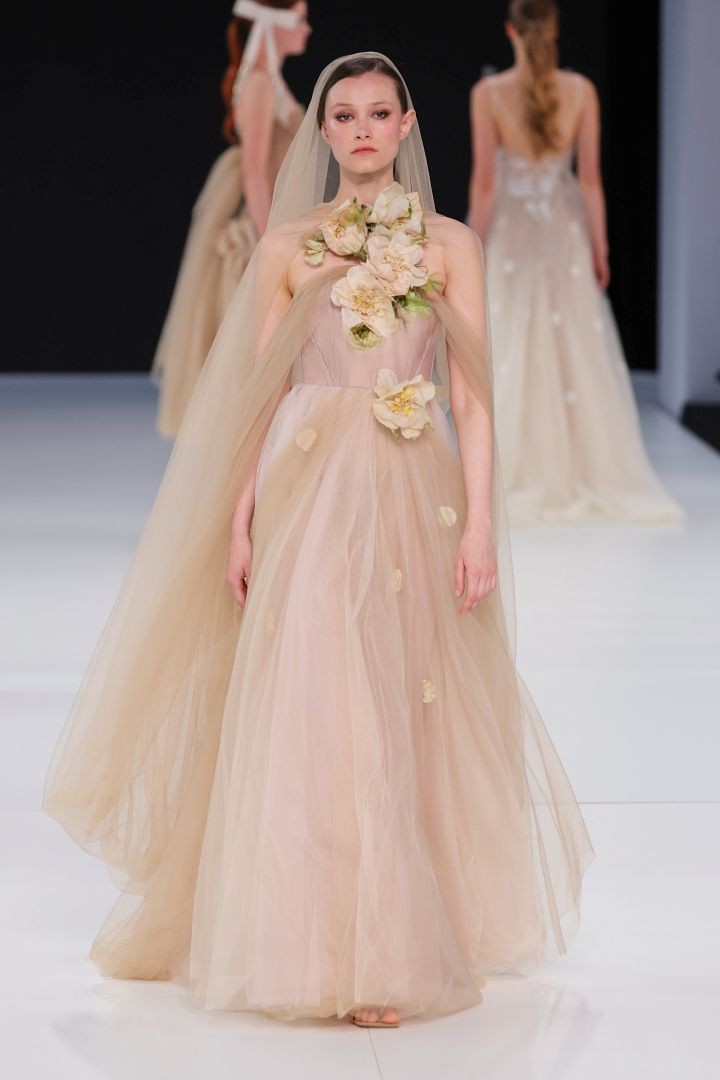 قد تتساءلين أحياناً ما إذا كان لون الفستان مهماً؟ والإجابة المختصرة هي نعم، خاصةً في الصور وفيديو زفافكِ التي تبقى للأبد. إن اختيار فستانٍ ذي طبقة خارجية من الدانتيل العاجي وبطانة بلون نيود داكن، على سبيل المثال، غالباً ما يظهر في الصور بعمق وتباين أكبر، مما يُبرز تفاصيل الدانتيل الدقيقة بشكل أفضل من الفستان العاجي الفاتح. ولكن في المقابل، يبدو الفستان العاجي بالكامل أكثر رقة وكلاسيكية، ولكنه قد يفقد بعض التفاصيل في الصور، خاصةً مع الإضاءة الساطعة، لذا تلجأ العرائس اللواتي يستعن بخبير أزياء إلى اختيار فستان مطرز بورود نافرة.
