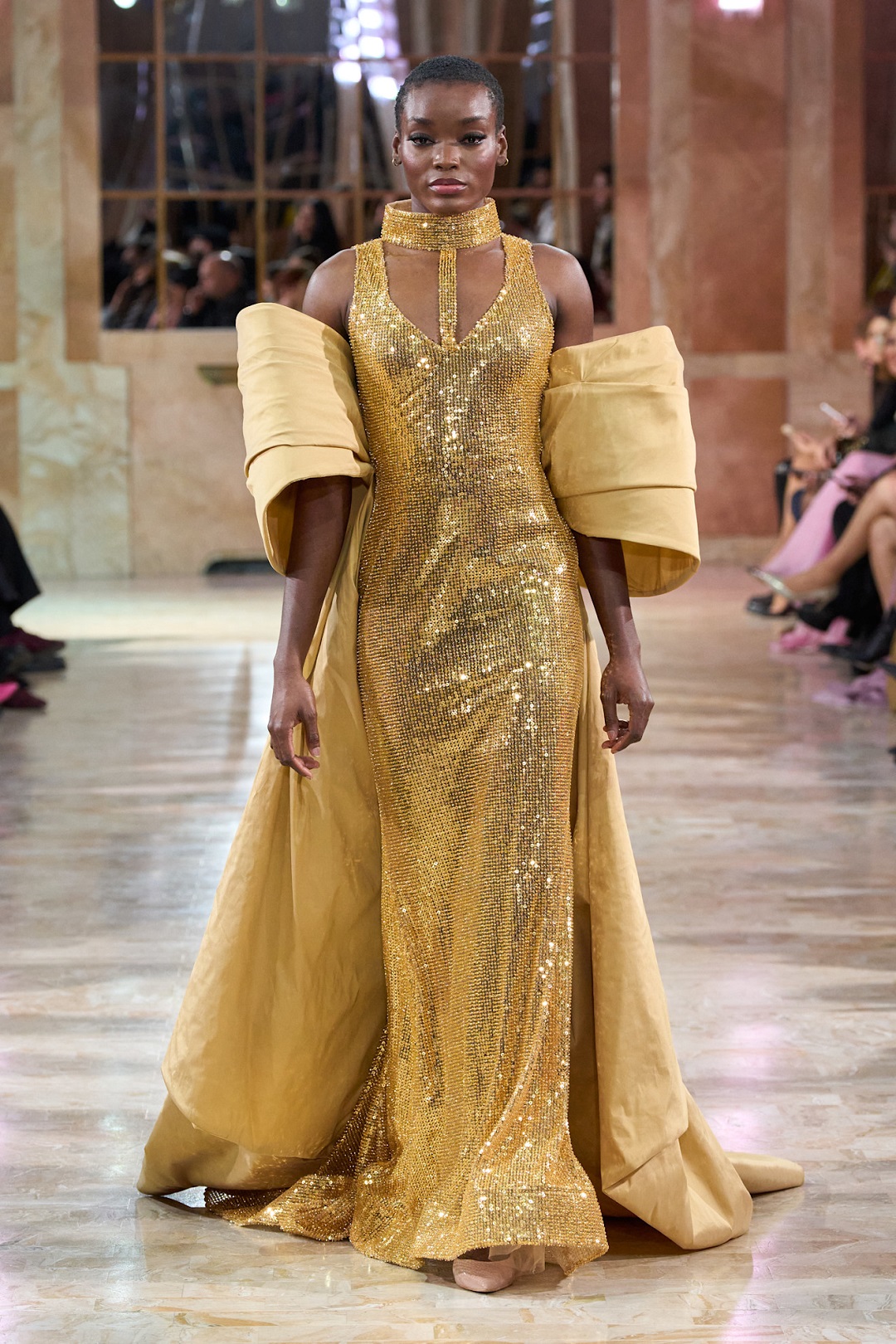 تميّزت المجموعة أيضاً بتصاميم عصرية لافتة ركّزت على إبراز الخصر، مع اعتماد السلاسل الذهبية والشراشيب والأورغانزا المُلونة في بعض الموديلات، لتضيف لمسة درامية مستوحاة من العصور القديمة ولكن بستايل حديث وجريء، وهذه التفاصيل منحت الفساتين حركة وأناقة، وعكست حساً مسرحياً راقياً ينسجم مع هوية أسبوع الهوت كوتور حيث تلتقي الجرأة بالحِرفية العالية.