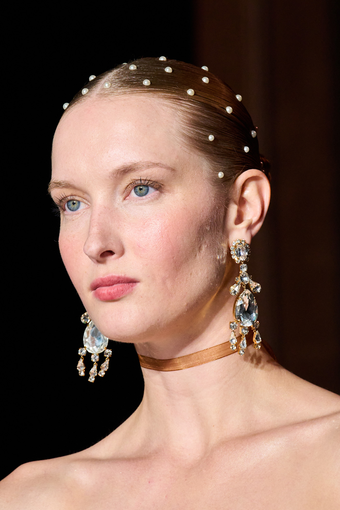 كما تألقت عارضات ستيفان رولان Stéphane Rolland بأكسسوار شعر استثنائي أقرب إلى قطع فنية منحوتة، تميزت بالتصاميم الهندسية، سواء باللون المعدني اللامع أو بدرجات الأسود العميق والأحمر، تعكس قوة وأناقة معاصرة، حيث لا تكتفي بإبراز تسريحة الشعر المشدودة بعناية، بل تضيف بعداً معمارياً ينسجم مع روح دار ستيفان رولان المعروفة بالفخامة الجريئة والخطوط النحتية.