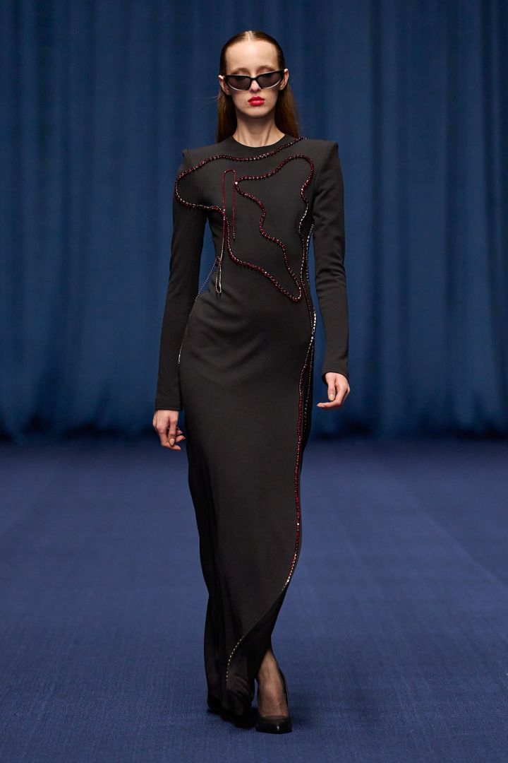 وهناك فساتين Fit & Flare التي تحدد الخصر بالتطريز، مع قصة صدر تضيق عند البطن، وتمنح الجزء السفلي قليلاً من الحجم، كما أن هناك تصاميم مزودة بأحزمة تحدد الخصر بصرياً، وتكسر الخطوط المستقيمة للجسم. ولا تنسي أن تفاصيل غنية مثل الكشكش والتكسيرات؛ تعطي وهماً بالامتلاء، وتضيف لمسة أنثوية على إطلالتك. إذا وقع اختياركِ على فستان مخملي ناعم وانسيابي يبرز أنوثتك بأسلوب راقٍ؛ فاحرصي على اختياره بقماش مطاطي، فالخامة السترتش تمنحكِ حرية الحركة وتناسقاً جذاباً مع الجسم، أما التطريز الفاخر فيضفي فخامة لا مثيل لها، ويكمل الإطلالة بلمسة ملكية، وهو اختيار مثالي للسهرات الشتوية والمناسبات الخاصة.