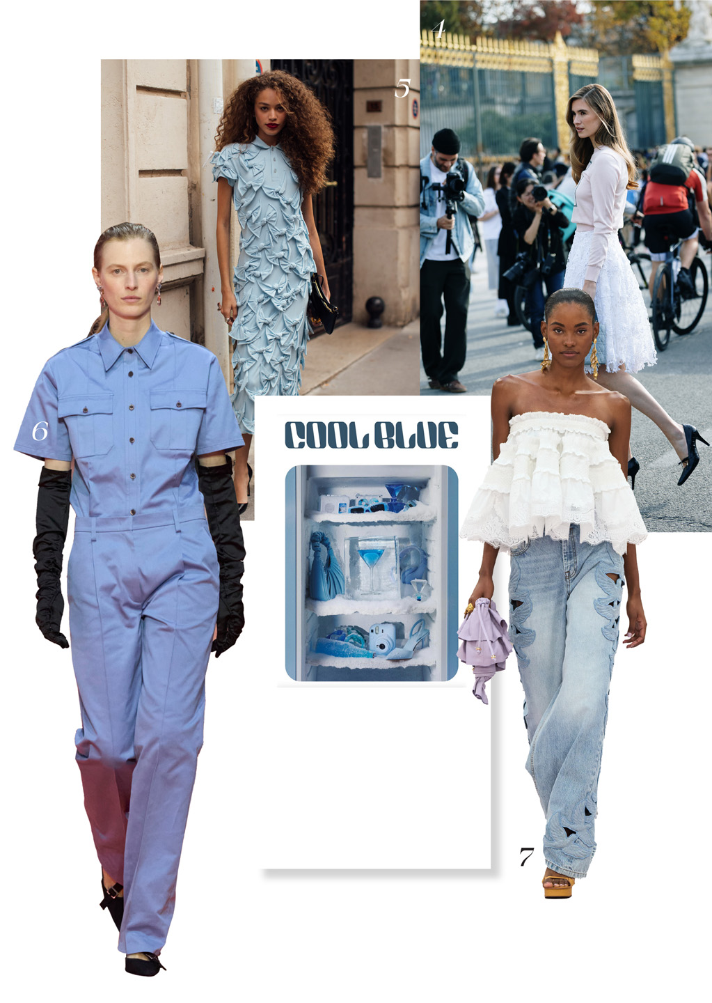 ووفقًا لبنترست، ستسيطر درجات اللون الأزرق الهادئ على جميع الفئات. يُعدّ اللون الأزرق البارد صيحةً عابرةً للفئات. بالنسبة لجيل الألفية وجيل زد، ستنتشر أنماطٌ باردةٌ مثل المعاطف ذات الألوان الباردة والإكسسوارات الجليدية في كل مكان. وقد زادت عمليات البحث عن "الأزرق الجليدي" بنسبة 50%، و"فساتين الزفاف باللون الأزرق الجليدي" بنسبة 55%.