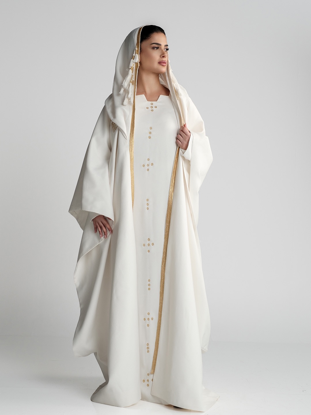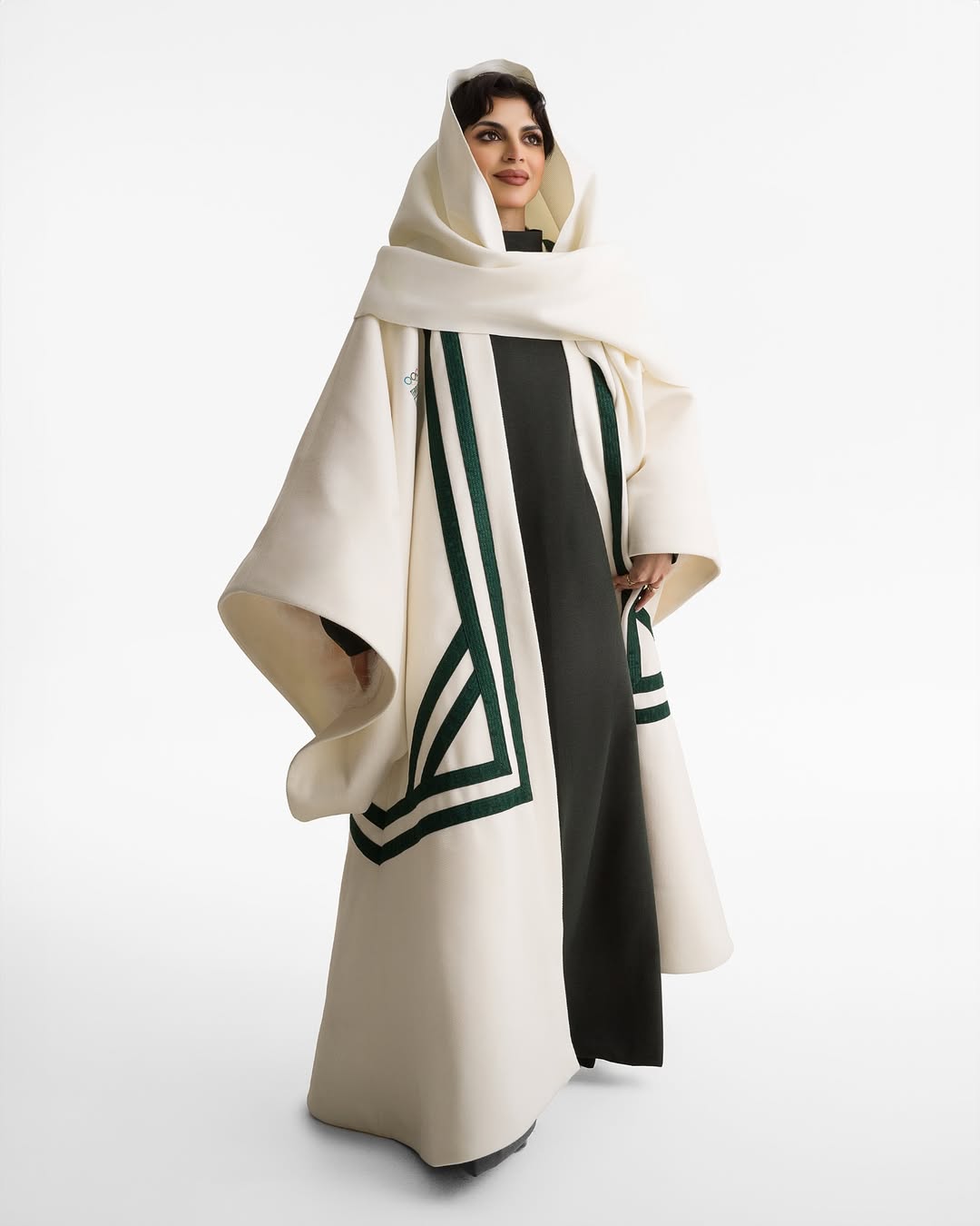 لقد اخترت للرجال بشتاً من الوبر وصاية من الصوف لدعم التدفئة، وللنساء زياً مصنوعاً من الصوف الناعم ليتماشى مع التصميم، وتم اختيار اللون الأبيض وفقاً لبروتوكول الحدث، وقررت اختيار زي البشت المتداول ارتداؤه في يوم الجمعة في المملكة العربية السعودية، حيث إن لكل يوم لوناً خاصاً به. يمثل البشت الهيبة والوقار والأصالة، واخترت البشت المكسر المصنوع من الوبر للرجال، لقدرته العالية على توفير التدفئة، وصاية من الصوف بمناسبة إدراج البشت ضمن قائمة اليونسكو للتراث الثقافي غير المادي عام 2025. أما “ثوب المسدح“ النسائي الذي يجسد الحشمة والرقي والتميز فهو مستوحى من الأثواب النسائية التراثية في المملكة، المعروف بنقوشه المنقطة ولونه الأزرق. صممته بطريقة عصرية وغطاء رأس متصل بالرداء من الأعلى إلى الأسفل ومزين بهدب البيرم الذي عملت عليه يدوياً مع والدتي، تحت إشراف معلمتي الفاضلة فاطمة الطلحي.