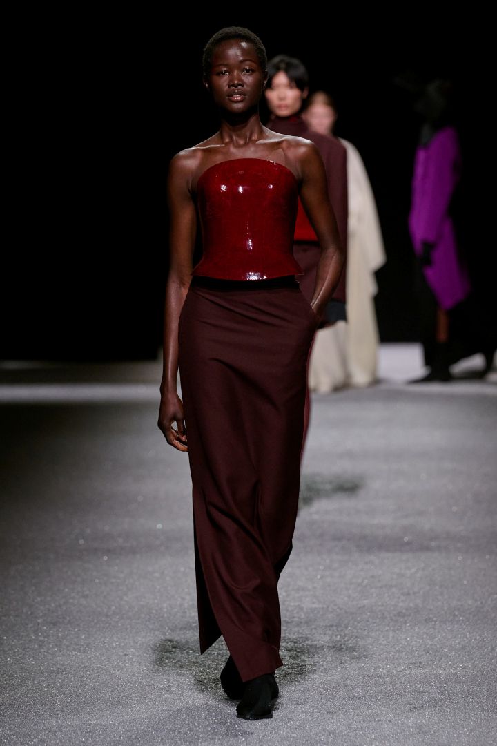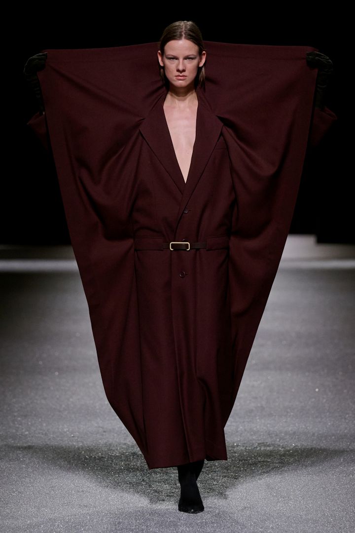 اتسم العرض بلمسة مستقبلية غامضة- وإن كانت متجذرة في براعة الحِرف التقليدية التي لطالما ميّزت دار الأزياء الباريسية. تضمنت المجموعة: سترات وبدلات ضيّقة من الجلد، وكنزات صوفية محبوكة بتقنية عالية، وأقمشة حريرية مزيّنة بطبعات مرصّعة بالغيوم على الصدر أو تمتد على طول الفساتين.