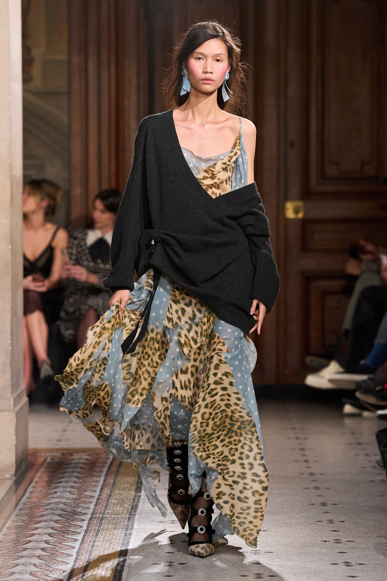 قدّم العرضُ العديدَ من الاقتراحات المُلهمة؛ بدءاً من الخياطة المتقنة، وصولاً إلى الفستان المذهل الذي ارتدته مونا توغارد، والمُزيّن بالرسومات والتطريزات والقصات المُمزقة والشراريب، والذي يُشبه لوحة زهور نابضة بالحياة. كما بدت العديد من العارضات كشخصيات في لوحات فنية كلاسيكية من شمال أوروبا، وهو شعورٌ تَعزّز بفضل أغطية الرأس التي صنعها ستيفن جونز من قميصٍ ملفوفٍ بطريقةٍ قد تُلهم الفنانين لرسم لوحات زيتية.