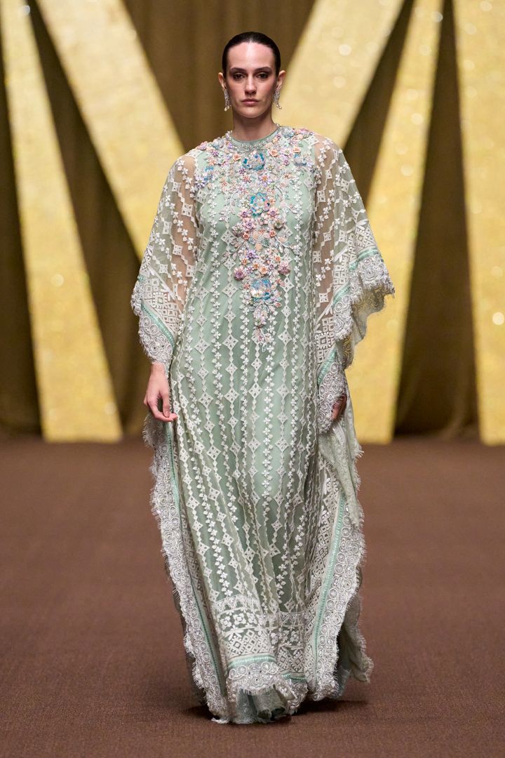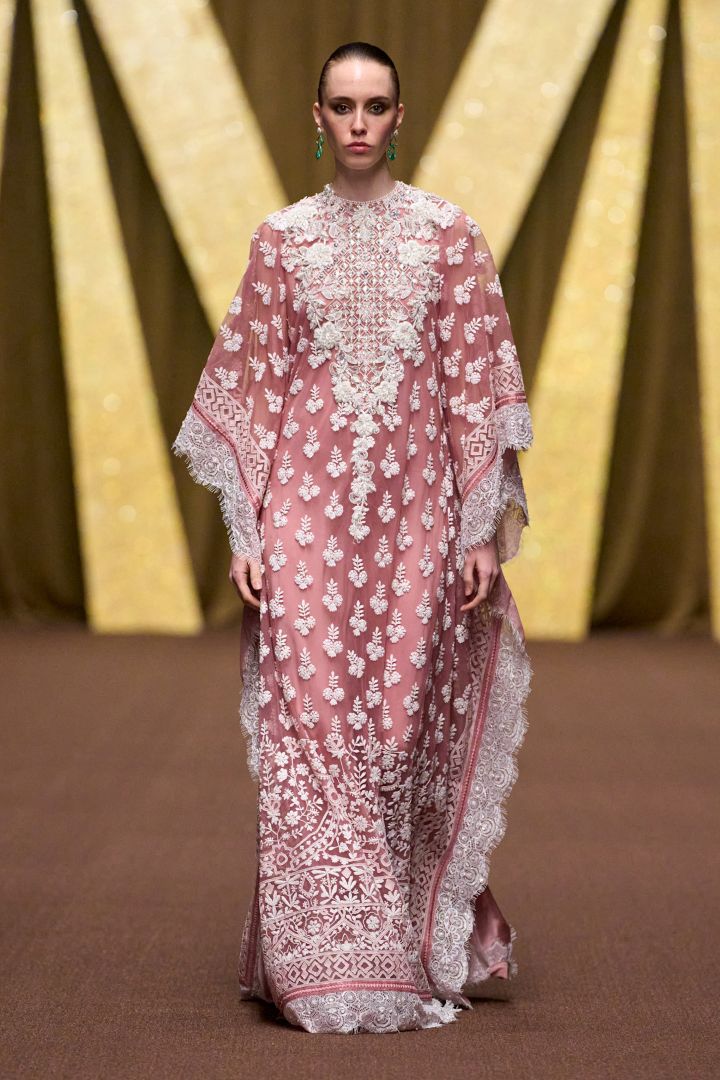 أطلق المصمم مانيش مالهوترا Manish Malhotra العباية الزهرية المبطنة بالأبيض والمطرزة بزهور ورسوم منمقة مطعمة باللؤلؤ، وهي تزدان بتخريمات الدانتيل عند الحواف. وأطلق عباية أخرى بالتطريز نفسه ولكن بلون الباستيل الحيادي.