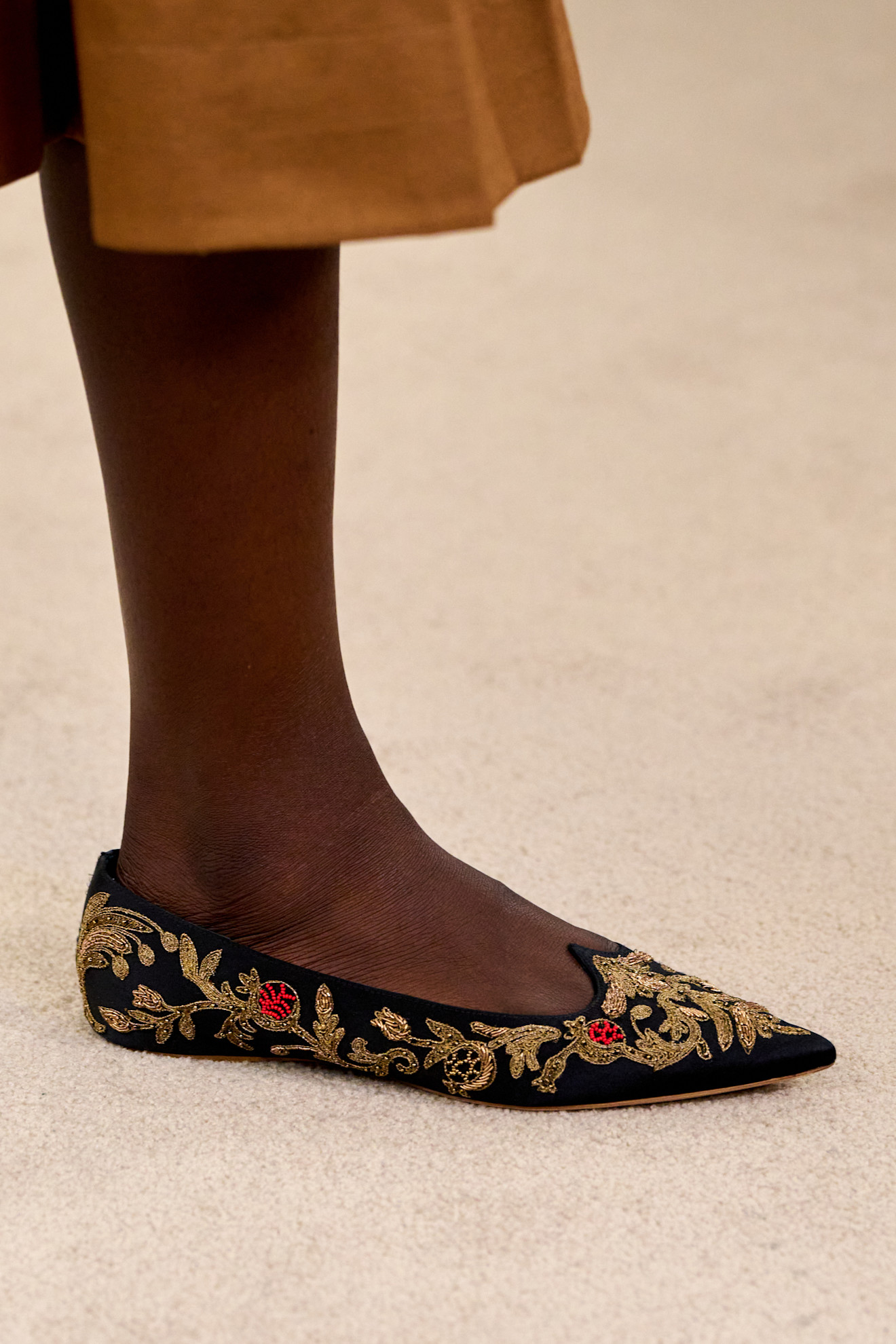 تعدّ الأحذية المسطحة المروسة على شكل حرف V من أبرز صيحات الأحذية الأنيقة التي بدأت بالظهور بشكل متزايد في عام 2026 بين مدونات الموضة والمشاهير وقد برعت دار جيامباتستا فالي Giambattista Valli في تنفيذها لصيف 2026. يعود الفضل في رواج هذه الأحذية ذات المقدمة الحادة إلى دور الأزياء العالمية الكبرى، حيث قدمت شانيل Chanel مجموعة ما قبل الخريف التي تزخر بتصاميم ثنائية اللون جريئة، بينما تألقت ستيلا مكارتني في عرض ربيعها بتصاميم باللون الأحمر الياقوتي. تُثبت هذه التصاميم أن الأحذية ذات الخطوط الانسيابية يمكن أن تتخذ أشكالاً أكثر نعومة واستدارة، أو أشكالاً أكثر جرأة ودقة، تماماً مثل كنزات الرقبة على شكل حرف V، حيث تكون بعض الانحناءات عميقة فتُحدث أدق التفاصيل فرقاً كبيراً.
