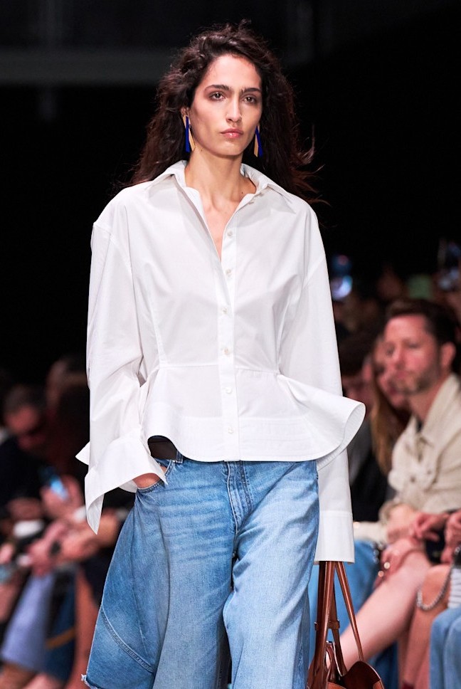 يمكنك سيدتي أن تودعي سراويل الجينز ذات الأرجل المستقيمة والفضفاضة Barrel Jeans، لتستقبلي سراويل الجينز ذات الأرجل الواسعة من الأسفل والتي تبرز بقوة وتشكّل محط الأنظار عندما يتعلق الأمر باتجاهات الجينز لربيع 2026. يتميز هذا التصميم الفضفاض من سيلين Celine، المعروف أيضاً باسم "الساق المنتفخة" أو "حدوة الحصان"، بخصر محدد يتسع تدريجياً لينتهي بساق واسعة تضيق عند الكاحل. يتوفر هذا التصميم عادةً بخصر متوسط ​​أو مرتفع، مع تنوع في مدى اتساع الساق كما في تصاميم ستيلا مكارتني Stella Mccartney.