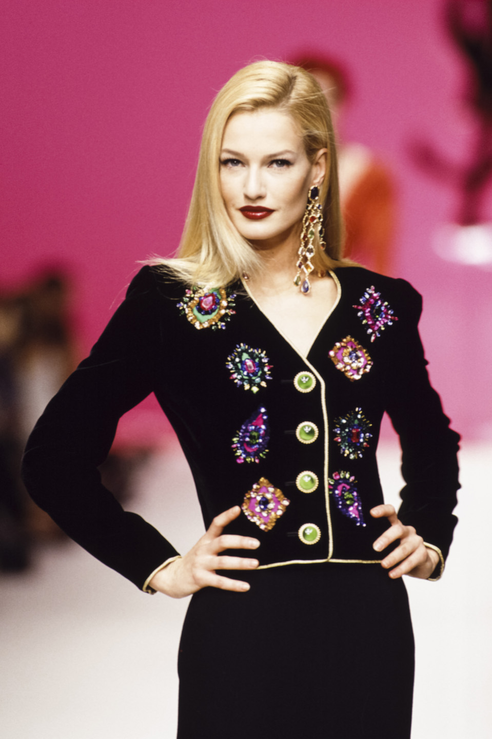 كارن مولدر Karen Mulder، في عرض إيف سان لوران خريف 1995Yves Saint-Laurent (PAT/ARNAL/Gamma-Rapho via Getty Images).