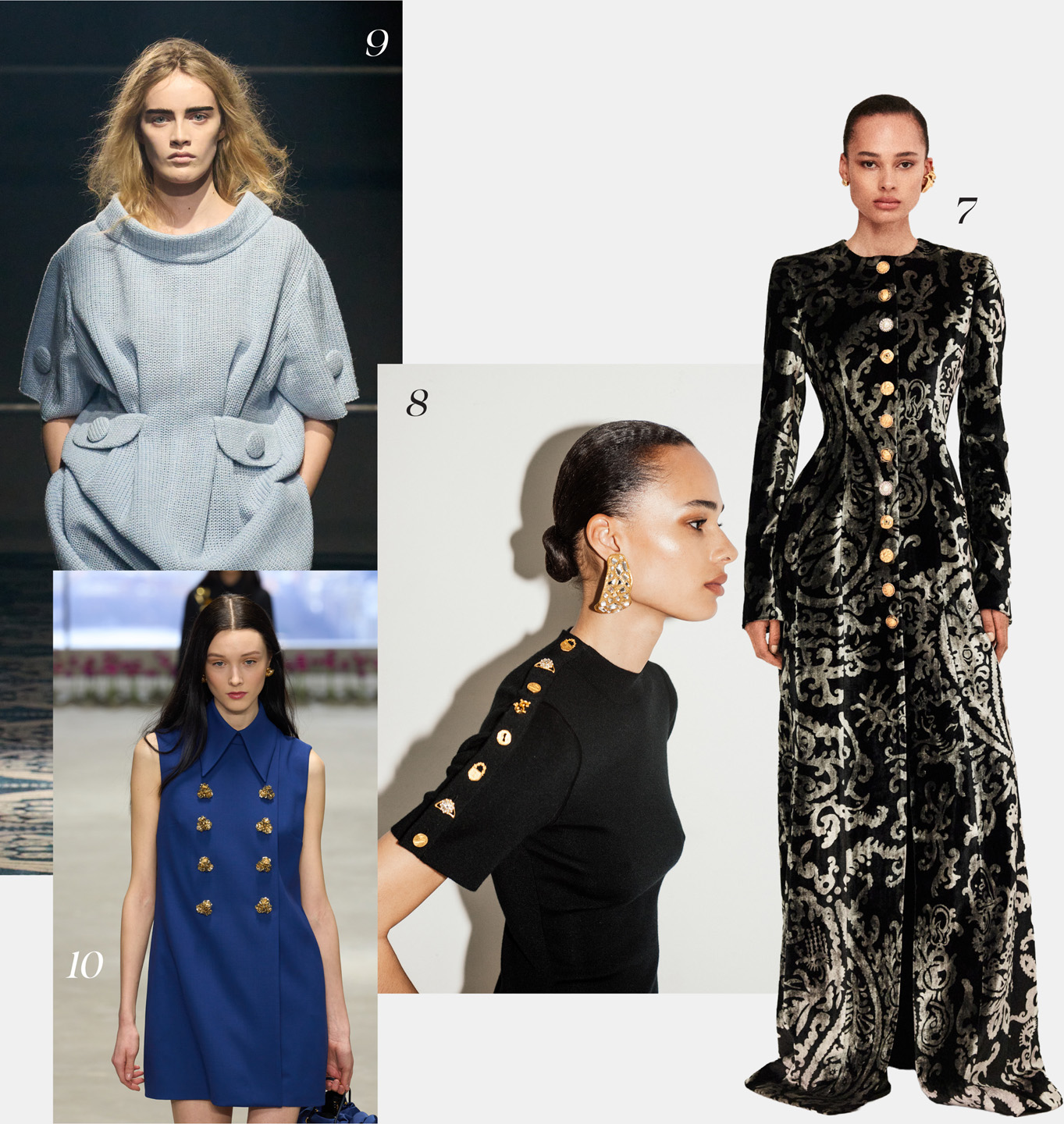 لا تزالُ الموضةُ اليوم تستلهمُ جماليَّاتِ عصرِ النهضة، بما في ذلك عناصرُ الأزرارِ المزخرفة التي تعودُ إلى تلك الحقبةِ المؤثِّرة. سواء كنتم من عشَّاق التاريخ، أو من محبِّي الموضة، أو مجرَّد فضوليين بشأن تأثيرِ الأشياءِ اليوميَّةِ في عالمنا، فإن قِصَّةَ الأزرارِ تقدِّمُ لمحةً رائعةً عن ماضينا في عالمِ الأزياءِ الذي يعكسُ الواقع. يُضفي الزرُّ الأنيقُ لمسةً مميَّزةً على أي إطلالةٍ، لكنَّها نادراً ما تلفت الانتباه. وتاريخياً، كانت الأزرارُ رمزاً للمكانةِ الاجتماعيَّة، وقطعاً فنيَّةً مصغَّرةً، بل وقطعاً ثمينةً أيضاً لهواة الجمع. ويمتدُّ تاريخُ الأزرارِ إلى قرونٍ مضت، جمعت فيها بين الحِرفيَّةِ، والأناقةِ، والفخامة. ولا تزالُ الأزرارُ الكبيرةُ والمزخرفة من أبرزِ صيحاتِ الموضة، فهي تظهرُ في تصاميمِ مصمِّمين عالميين مثل برادا Prada، وسكياباريللي Schiaparelli، وغابرييلا هيرست Gabriella Hearst، وشانيل Chanel.