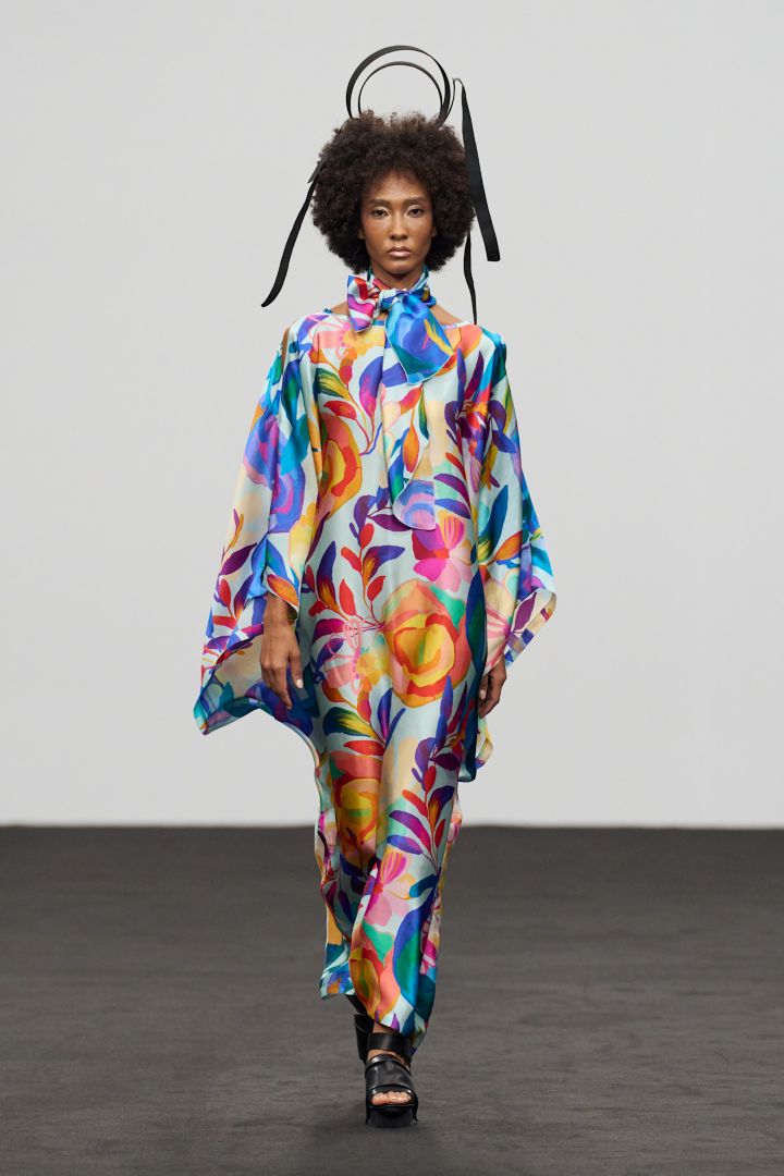 أطلقت دار إميليو بوتشي Emilio Pucci عباية حريرية فضفاضة ورقيقة تزدان بطبعة "كولاني"، وتزهو بنقوشها المستوحاة من الزخارف القبلية والفنون الأفريقية، وتتسم بلمسة حيوية وراقية على تصميم كلاسيكي خالد. وتقدم الدار هذه القطعة الفريدة التي تستخدم فيها طبعةً شاملةً تجعل المنتج غير قابل للتكرار. لذا، قد تختلف نقشة الطبعة عن تلك المعروضة في الصورة. وتتميز بفتحة عنق دائرية مع أكمام مفتوحة موصولة برباطين وهي عباية ماكسي.