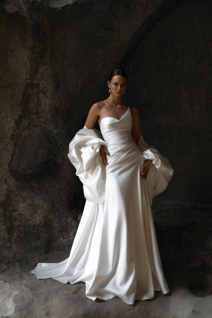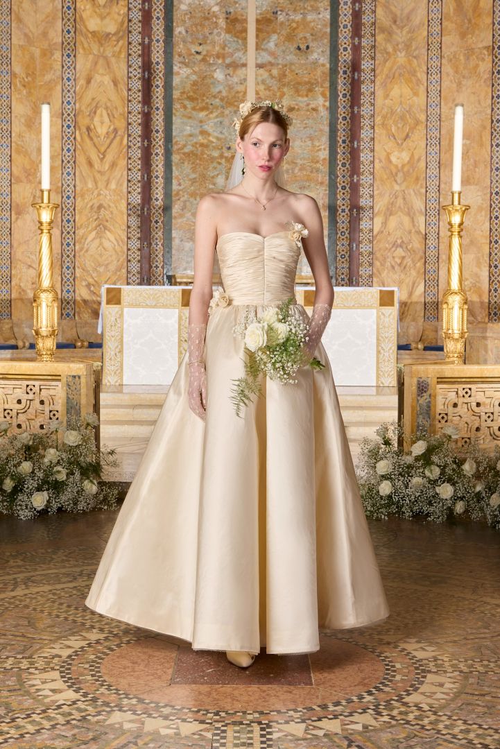 ليست فساتين الزفاف بدون حمالات جديدة في عالم حفلات الزفاف، لكنها بدت هذا الموسم أكثر عصرية من أي وقت مضى. أعاد المصممون ابتكار فتحة الرقبة الكلاسيكية بتفاصيل عصرية وجريئة، من الثنيات المنحوتة إلى أشكال عيون القطة الحادة والحواف المتموجة الناعمة. ولعبت الأزهار دوراً محورياً أيضاً، حيث تزيّنت الصدريات بدون حمالات بتطريزات وزخارف تشبه باقات الزهور، مما أضفى على منصة العرض لمسة رومانسية، وكأن العروس هي باقة الزهور نفسها. والنتيجة هي رؤية عصرية لقصة كلاسيكية خالدة، مُعززة بالخامات والتفاصيل المميزة.