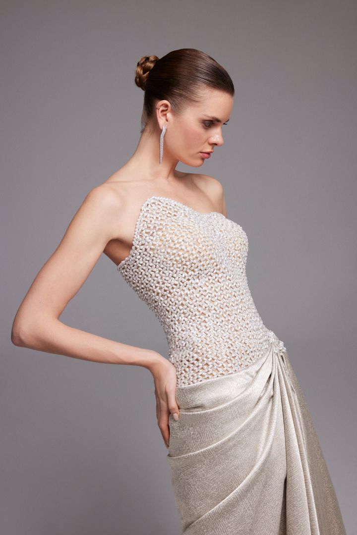 في الأزياء الراقية وملابس السهرة، تبقى الطبقات الشفافة والتول ذو الملمس المميز والقواعد المطرزة بدقة عناصر أساسية. ويُحدد التفاعل بين الشفافية والبنية والحرفية اليدوية المظهر العصري لموسم ربيع وصيف 2026. وبشكل عام، تتمحور أقمشة موسم ربيع وصيف 2026 حول النعومة والحركة والرقي الرقيق؛ ما يُنتج قطعاً تُشعرك بالراحة والبساطة في آنٍ واحد.