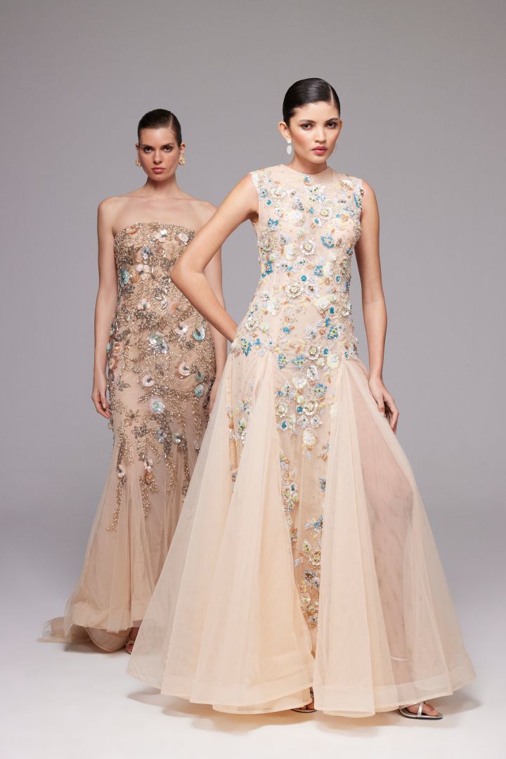 أطلقت المصممة المبدعة السعودية نور الظاهري مجموعتها الراقية الجديدة تحت شعار Before Sunset لعام 2026، وهي تجسِّد اللحظة العابرة التي يخف فيها ضوء النهار وتبدأ الظلال في التفتح. تستمد المجموعة جذورها من شاعرية الضوء، وتتكشف من خلال لوحة ألوان راقية تنتقل من درجات العاج إلى الألوان المعدنية العميقة؛ ما يعكس تدرجات الألوان عند ساعة المغيب. وقد صُنعت الفساتين من التول الرقيق المبطن بالحرير، ودُعمت بتطريز يدوي دقيق وحرفية عالية من خلال تقنيات معقدة تتطلب جهداً كبيراً؛ ما يرتقي بكل قطعة إلى ما هو تحفة فنية.