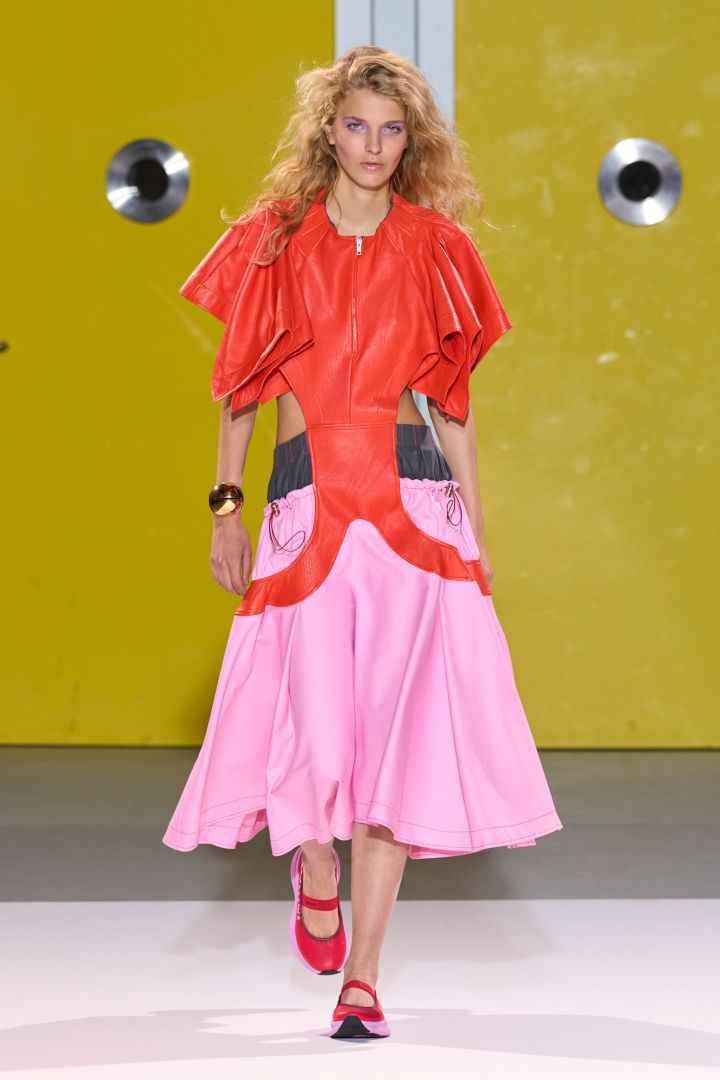 قدمت مجموعات ربيع وصيف 2026 العديد من الدروس في تنسيق الألوان. احتوى عرض أكريس Akris على تدرجات لونية جريئة، من بينها الأخضر الليموني والأحمر الياقوتي والأزرق المحيطي. وبطبيعة الحال، ساهمت هذه التدرجات في جعل بعض القطع تبدو أكثر غرابةً وتألقاً. وفي عروض أخرى، تخللت الألوان الجريئة المتداخلة درجات لونية سهلة الارتداء كالأخضر والبرتقالي التي تميزت مجموعتها بطابعها النحتي، حيث خطفت الألوان الأنظار تماماً كالملابس نفسها، كالفوشيا والخردلي والأزرق المخضر.