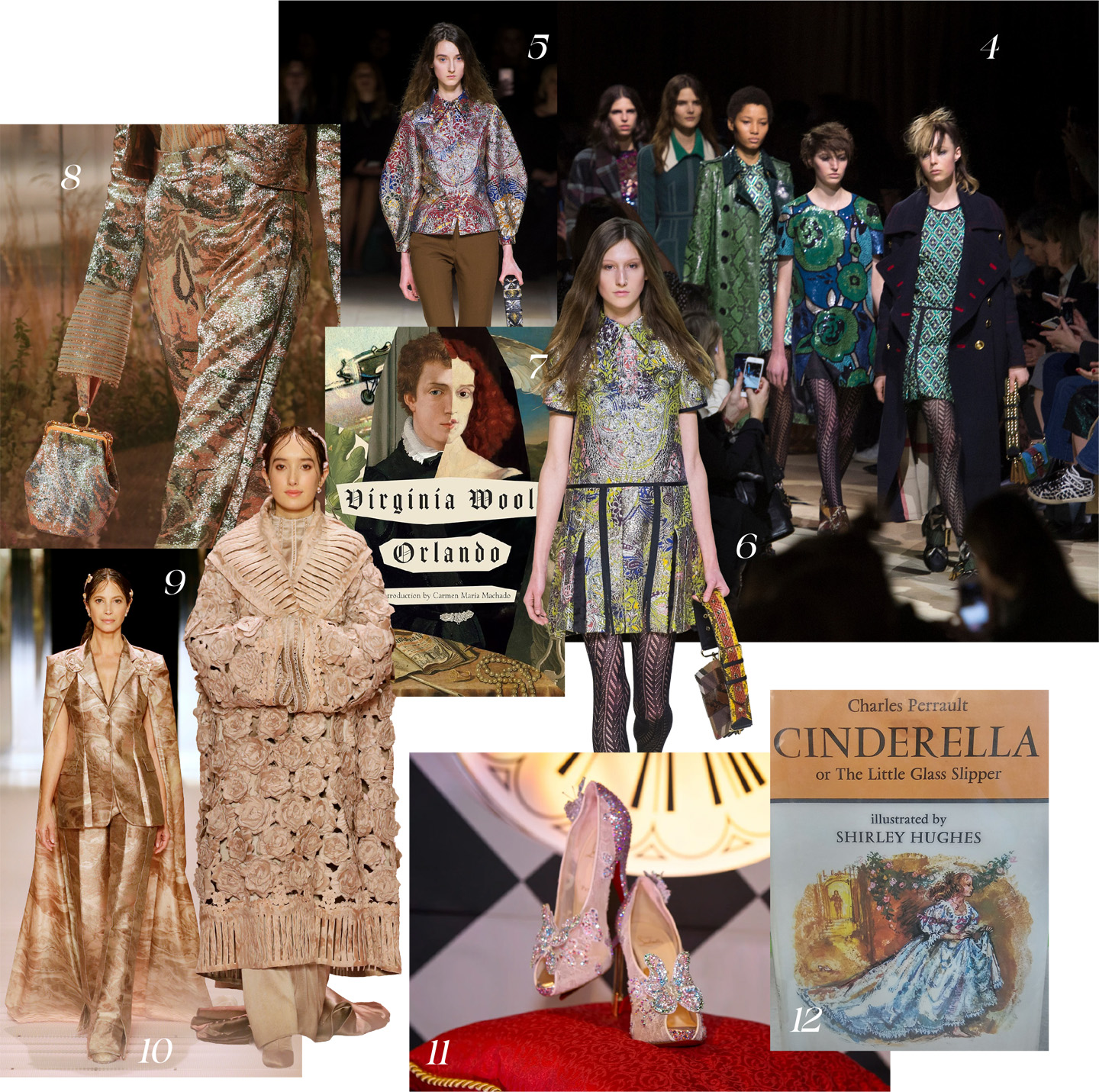 عندما صوَّر الفنَّانُ المبدعُ يورجن تيلر Juergen Teller الكاتبةَ الشهيرةَ جوان ديديون Joan Didion لحملةِ سيلين Celine لربيع وصيف 2015، حبسَ العالمُ أنفاسه، إذ انتشرت صورةُ الكاتبةِ وهي ترتدي نظَّاراتٍ ضخمةً، وقميصاً أسودَ مع قلادةٍ ذهبيَّةٍ بسرعةِ البرق، ما دفعَ ديديون إلى الإدلاءِ بتصريحٍ إعلامي بعد أن سُئِلَت عن رأيها بهذه الضجة، قائلةً: «ليس لدي أدنى فكرةٍ». ويُرسِّخ الأدبُ شخصيَّاتٍ خالدةً، تستعينُ بها دورُ الأزياءِ العالميَّة، منها شخصيَّةُ «أورلاندو» في روايةِ «فرجينيا وولف» التي ألهمت دور فندي Fendi، وجيفنشي Givenchy، وبربري Burberry، وأثَّرت في اتِّجاهاتِ الموضة، بينما أسهمت روايةُ ترومان كابوت Breakfast At Tiffany’s في بثِّ جماليَّةٍ أنثويَّةٍ أنيقةٍ، جسَّدتها النجمةُ أودري هيبورن Audrey Hepburn بنجاحٍ مبهرٍ.