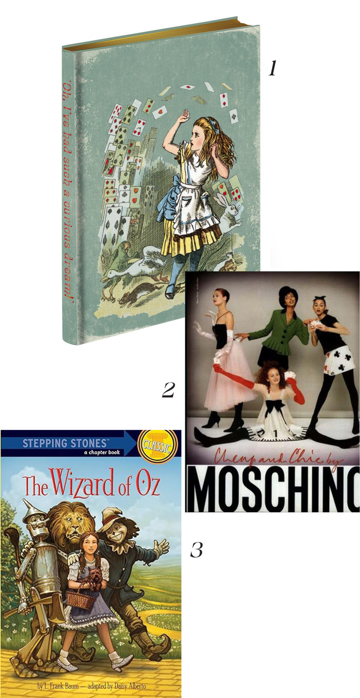 - مجموعة موسكينو Moschino Cheap and Chic عام 1995 من وحي رواية «أليس في بلد العجائب».