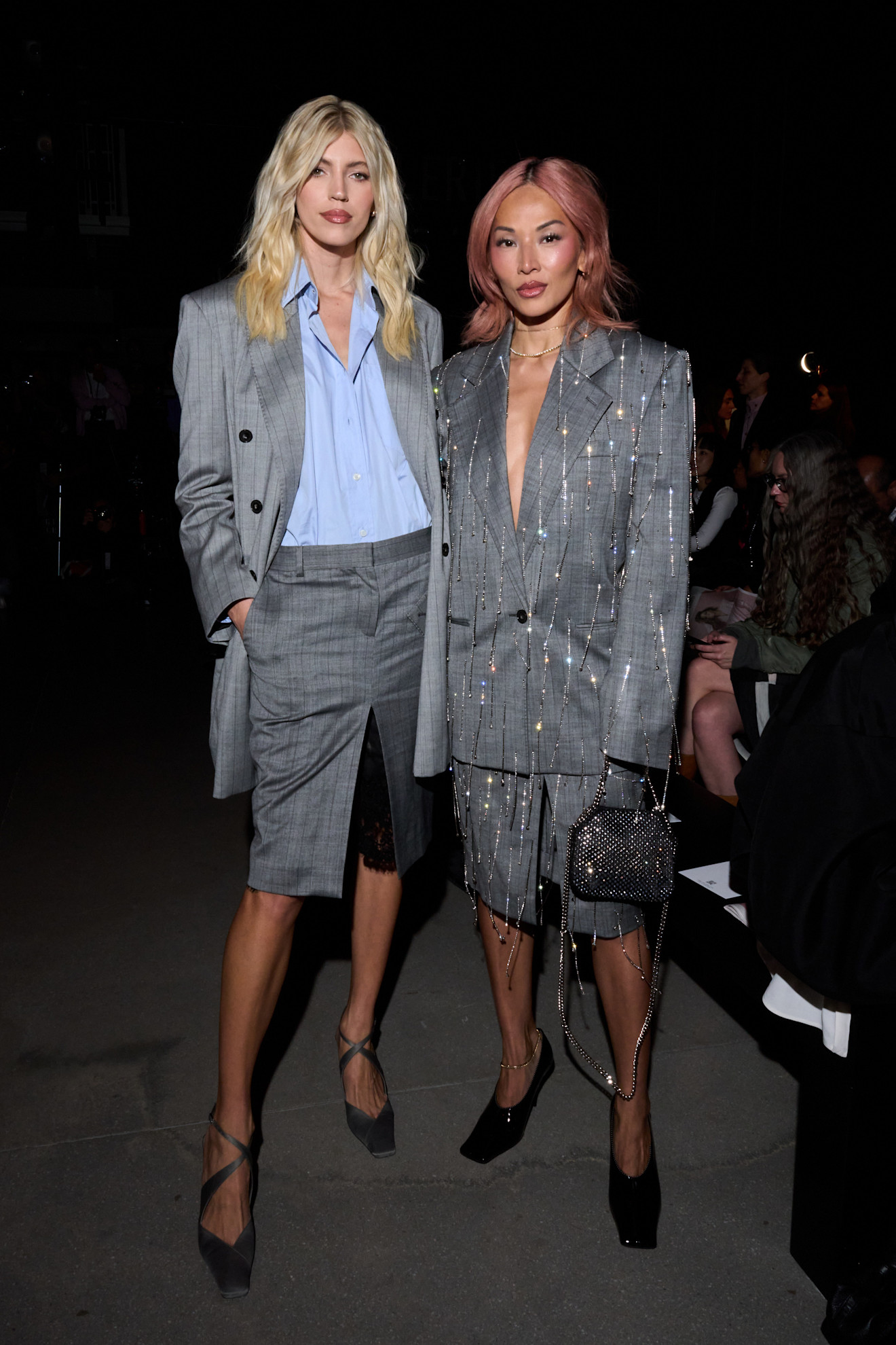شهد عرض ستيلا مكارتني Stella McCartney حضوراً قوياً للبدلة الرسمية بأسلوب عصري، ظهرت العارضة ديفون وندسور Devon Windsor بإطلالة هادئة وأنيقة ببدلة تنورة رمادية مخططة مع قميص أزرق فاتح، بينما اختارت مصممة الأزياء تينا ليونغ Tina Leung بدلة تنورة رمادية مزينة بالخيوط الفضية البرّاقة بشكل طولي، مما أضفى عليها لمسة من الفخامة، وكلتاهما اعتمدت أحذية كلاسيكية بكعب متوسط وتصميم مربع من الأمام.