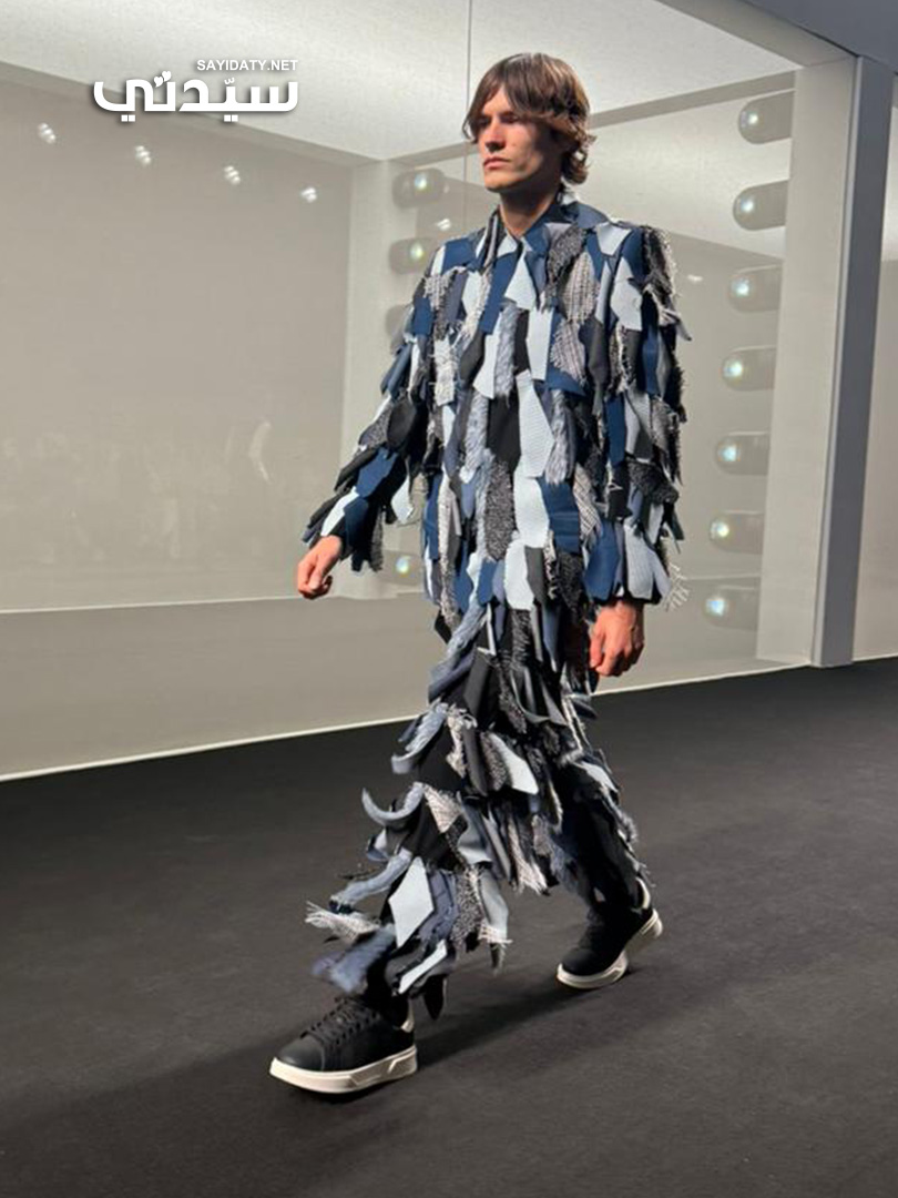 أحد أكثر عناصر المفاجأة في العرض كان استخدام الشراشيب الملونة في التصاميم الرجالية، وهي خطوة غير تقليدية في عالم الموضة الخليجية، فقد قدّمت الدار بناطيل مصنوعة من الشراشيب بخيوط متعددة الألوان، تنساب بحركة لافتة على المنصة، ما أضفى روحاً مرحة وحيوية على العرض.