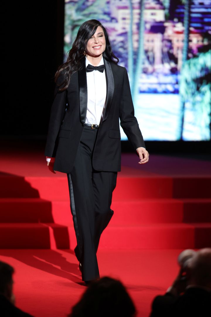 تهوى النجمة نادين لبكي البدلات التوكسيدوالتي تستعيد من خلالها بدلات إيف سان لوران Saint Laurent التي تعود إلى حقبة الثمانينيات، ومنها هذه البدلة التي نفذها لها المصمم هادي سليمان Hedi Slimane  المدير الإبداعي لدار سيلين Celine والتي بدت فيها متألقة ببدلة من الكريب الحريري والساتان الأسود، وانتعلت الحذاء الأسود العالي. لقد بدت إطلالة نادين لبكي كلاسيكية راقية بالبدلة التوكسيدو السوداء التي اختارتها لتتفرد بإطلالة استثنائية في افتتاح مهرجان كان السينمائي الدولي 2024، وتجمع بين البليزر الموهير، والسروال بقصة سموكنغ ونسقتها مع قميص أبيض، وأضافت لمسة جذابة لياقة القميص بربطة Papion باللون الأسود، فضلاً عن الحزام والحذاء باللون الأسود، واختارت مجوهرات كارتييه Cartier ليكتمل اللوك.
