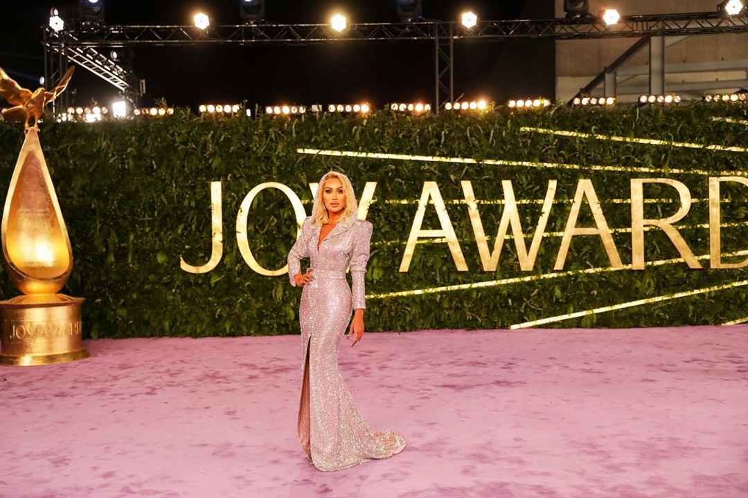 أما النجمة مايا دياب فتألقت في حفل جوائز صناع الترفيه Joy Awards، بزي ميتاليكي وبطابع Gradient وهو فستان يتسم بياقة منخفضة وبأكمام طويلة، مزود بغطاء على الرأس. الفستان من تصميم نيكولا جبران. إطلالة مايا أثارت العديد من التعليقات وشبهها البعض بإطلالة جورجينا رودريغيز صديقة النجم كريستيانو رونالدو.