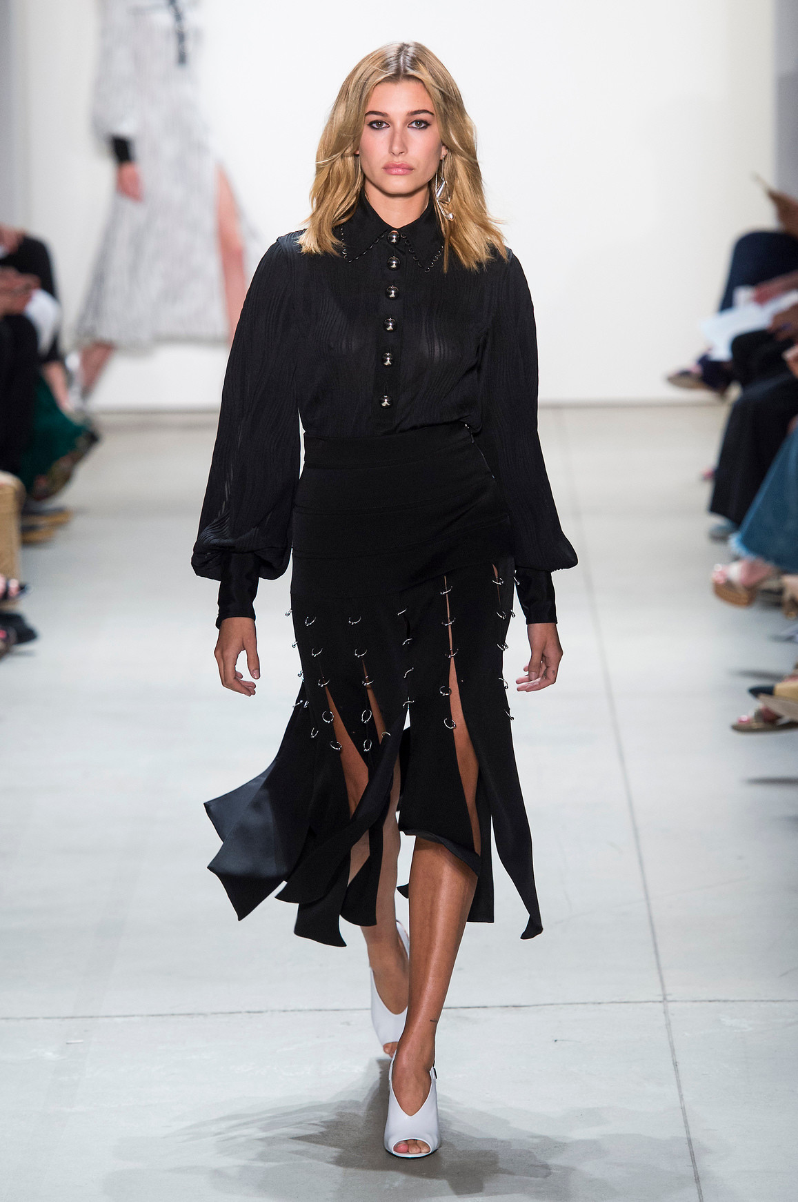 مع برابال غورونغ Prabal Gurung ربيع وصيف 2017، اتخذت إطلالات هايلي بيبر طابعاً أكثر نضجاً، حيث امتزجت الأناقة بالعملية في تصميم يعكس قوة المرأة العصرية، بالقميص الأسود والتنورة السوداء المزينة بحلقات معدنية، وكان اختيار هايلي لهذا العرض يعكس انجذابها للمصممين الذين يقدمون أزياء تحمل رسالة، وليس مجرد جمال بصري.