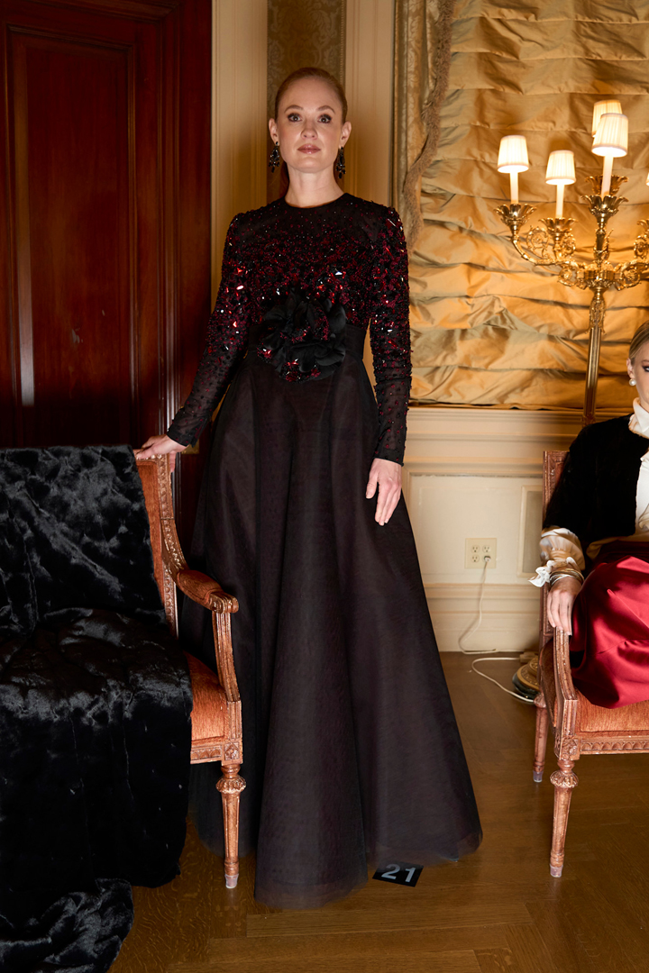 هناك أسماء ارتبطت بالفخامة والرقي، ويعتبر ريتشارد كوين Richard Quinn واحداً منها، فقد اشتهر بمجموعاته المرتكزة على مرادفات الأناقة الإنجليزية، وفساتين السهرة المحتشمة جزء أصيل منها، لذا كان لا بد أن نلقي نظرة على عرضه لخريف 2025 عندما فكرنا في موديلات تناسب إطلالات المحجبات، وأعجبنا أكثر من تصميم، ولكننا اخترنا لكِ الفستان الأسود المنفوش المصمم بنصف أكمام ومنسق مع قفازات طويلة من اللون نفسه تخفي تماماً الجزء المكشوف من الذراع، الأجمل أنه جاء مزداناً بفيونكه كبيرة على الخصر مثبتة بوردة زهرية كبيرة على الخصر، نسقيه مع حذاء أسود مزود بإبزيم يلف الكاحل وحقيبة كلاتش فضية أو سوداء، وارتدي أقراطاً متدلية قصيرة من الذهب الأبيض المرصع بالألماس؛ لتكتمل أناقتك الفيكتورية.