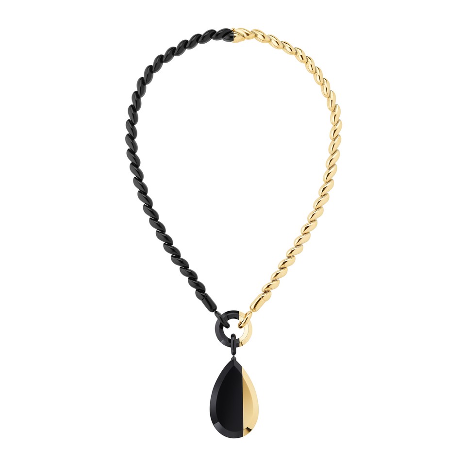 اختاري الذهبي والفضي معاً في مجوهراتك، خاصة مع العباية السوداء الراقية والمطرزة، فهذا المزج بين الذهب الأبيض والأصفر؛ يجعلكِ تتألقين مع الألوان القاتمة التي اخترتِها زيّاً لكِ. وتشكّل هذه التوليفة حلاً مثالياً؛ لأنكِ تستطيعين التزيّن بها في كل إطلالاتكِ المسائية والنهارية. وقد اخترنا لكِ من مجموعة إليزابيتا فرانكي Elisabetta Franchi العباية السوداء الحريرية والمزدانة بأحجار لامعة سوداء، ويُمكنكِ تنسيقها مع مجوهرات من بوشيرون مطعّمة بالألماس الأسود أو أحجار الأونيكس بتصميم غير متجانس.
