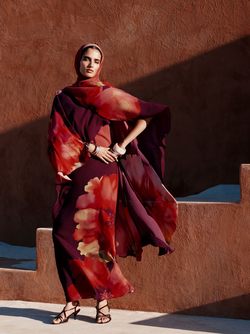 إذا كانت عبايتكِ بلونٍ موحد، فإن تنسيقها مع طرحة بنقوشٍ زهرية أو هندسية أو مخططة يُضفي عليها شخصية مميزة، كما يُمكن لتصميمٍ بسيط على الحجاب أن يُحقق التوازن، وكذلك اختيار طرحة مزدوجة من خامة موحدة وأخرى من نفس خامة العباية المطبعة. نسّقي معها الحذاء بكعب صغير بلون موحد من سالفاتوري فيراغامو Salvatore Ferragamo.