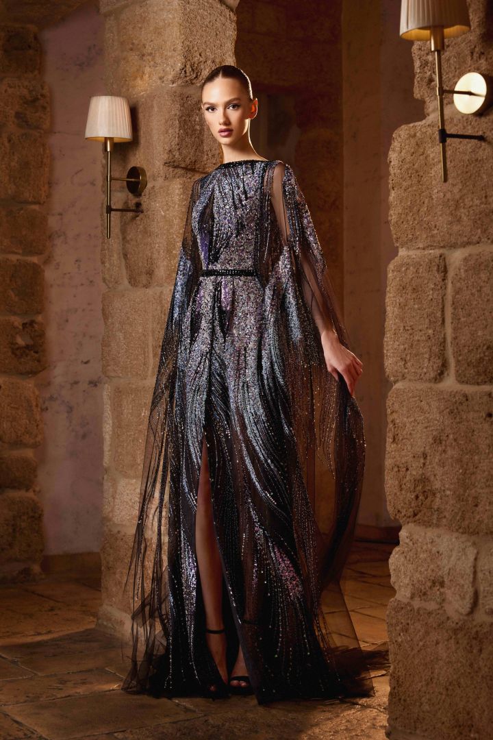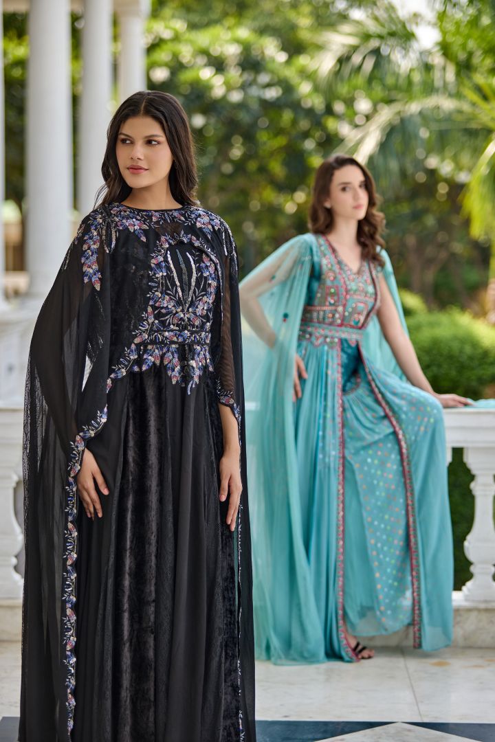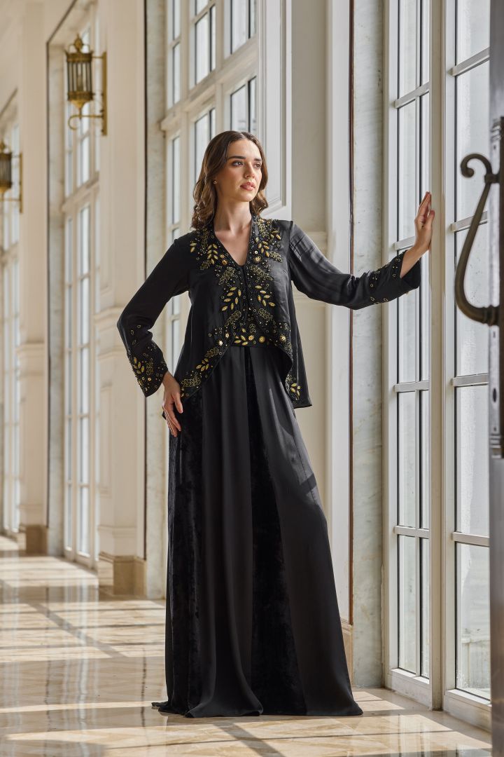 مع ارتفاع الحرارة تميل السيدات إلى اختيار القفاطين الملونة ذات الأقمشة الخفيفة والألوان الزاهية أو الحيادية، وقد اخترنا خلافاً للمعتقدات الشائعة التي تفيد بأن الأسود لون يمتص الحرارة، باقة من القفاطين الجذابة السوداء المطرزة بأحجار سوداء لامعة وخيوط براقة؛ لتتألقي في أمسيات الربيع المنعشة.