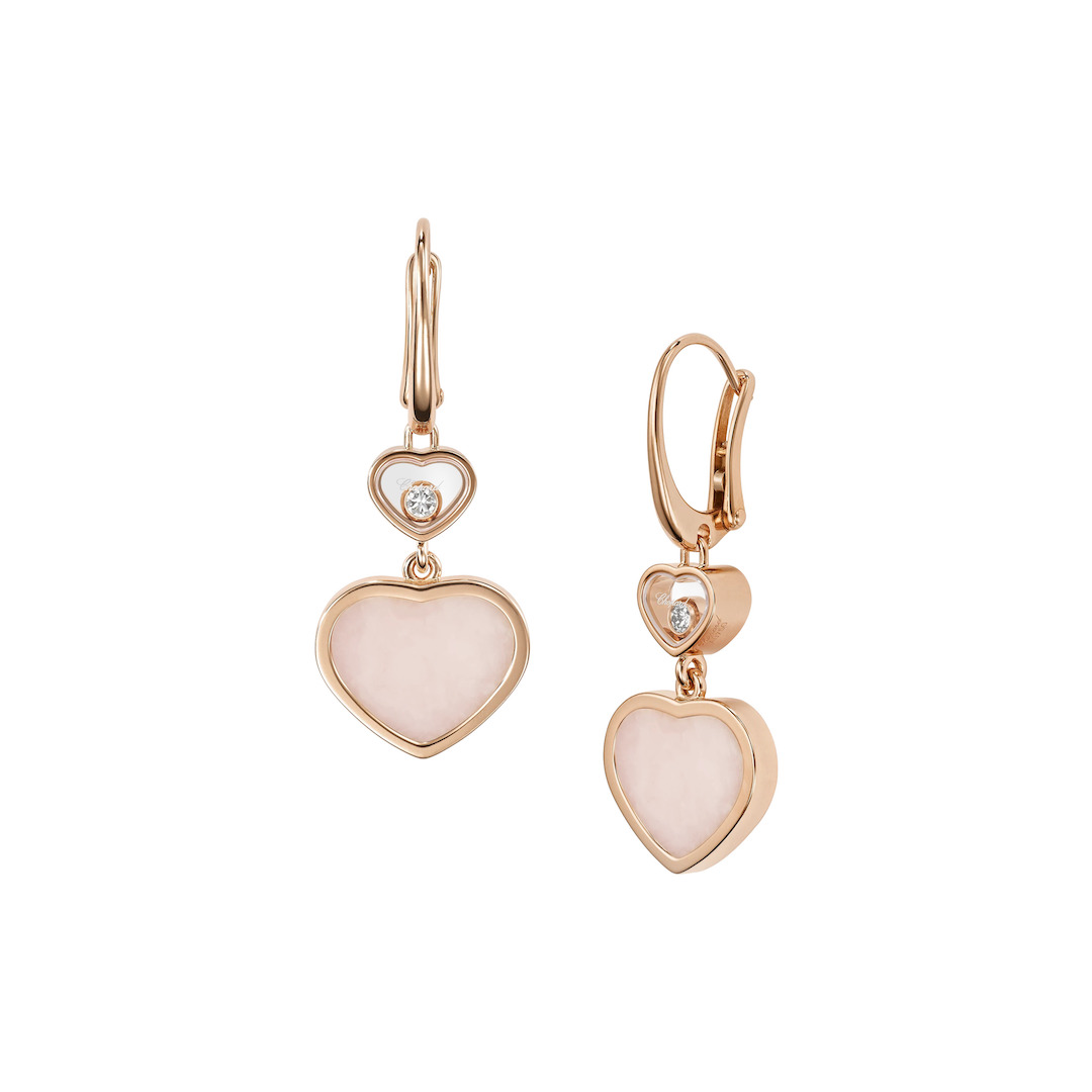 تُعرف دار شوبارد Chopard، بأنها تقدم مجوهرات تعكس قيم السخاء والطيبة التي تقوم عليها فلسفتها منذ تأسيسها. وفي انسجام تام بين رمز القلب الذي يُجسد الحظ السعيد وأحجار الألماس الراقصة الشهيرة للدار، تأتي مجموعة Happy Hearts لتوحد النساء ذوات القلوب الكبيرة حول العالم. وقد رُصعت هذه الأقراط المصنوعة من الذهب الوردي بأحجار من الأوبال الوردي، وأُضيف إلى كل منها حجر ألماس صغير متراقص لزيادة جرعة المرح.