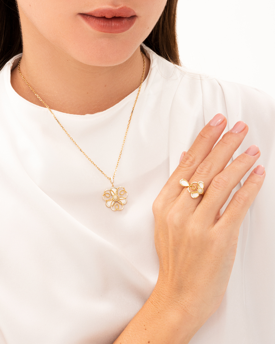 بدايتي كانت في مجال الهندسة المعمارية، لكن شغفي الحقيقي كان دائماً في التفاصيل الصغيرة والجماليات التي تُلامس الروح. المجوهرات بالنسبة لي هي "هندسة على مقاييس أصغر"، فيها توازن، نسب، وإحساس بالفراغ والضوء تماماً كما في العمارة. خلفيتي المعمارية ما زالت تؤثر في كل تصميم أقدمه، من التكوين الثلاثي الأبعاد إلى دقة الزوايا، ويمكنكِ استشعاره بسهولة من خلال مجموعاتي مثل خِفّة وزهرة، وحتى الانسيابية في مجموعة ورد وفراشات الأمل.