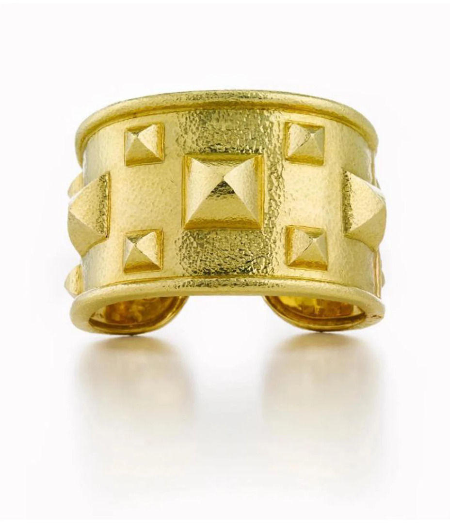 تقدم دار مجوهرات ديفيد ويب David Webb سوار Bastille الذهبي كقطعة أيقونية تجسّد أسلوب الدار الجريء وحرفيتها في أسلوب النحت الفريد. فهو قطعة تعلن حضورها منذ اللحظة الأولى، بتصميمه العريض المصنوع من الذهب الأصفر المصقول بعناية وبنقوشه الهندسية العميقة التي تستحضر قوة العمارة الكلاسيكية وتميّزها. يمتاز السوار بتوازن نادر بين الصلابة والفخامة، ما يمنحه شخصية مستقلة تجعل منه عملاً فنياً يرتقي فوق حدود الأكسسوار التقليدي.