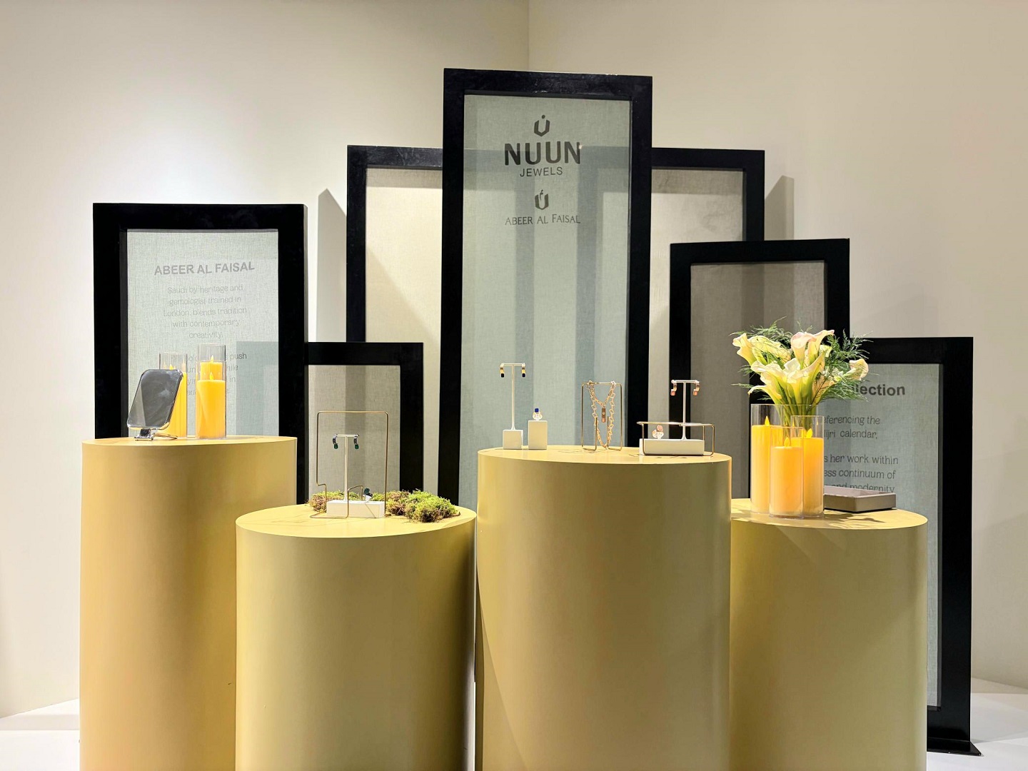 يُذكر أن معرض NUUN Jewels "نون" للمجوهرات أُقيم على مدار أربعة أيام في ليفت جاليري في حي جاكس في الدرعية، الحي الإبداعي الذي يجسد التقاء التراث الإبداعي بالتوجهات المعاصرة للفنون في المملكة، وزار المعرض نخبة من الشخصيات المختصة والمهتمة بالمجوهرات والتصميم. المعرض تضمن قسمين رئيسيين عُرضت في القسم الأول منه عشرات القطع من التصاميم المعروفة وبعض التصاميم الجديدة للأميرة نورة الفيصل، وفي القسم الآخر عُرضت المجموعة الأولى للأميرة عبير الفيصل التي انضمت للعلامة بوصفها مصممة بشكل رسمي.
