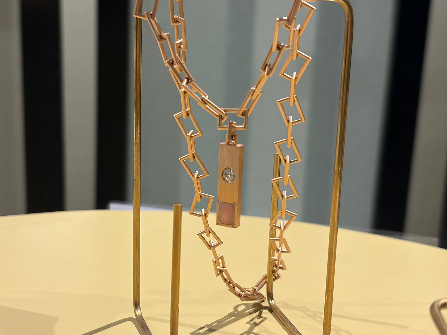 أخبرتنا الأميرة نورة أيضاً عن تصاميمها التي تُعرض في القسم الآخر من المعرض وأشارت: "بالنسبة لتصاميمي هناك بعض القطع المميزة من عدد من المجموعات التي نحب أن نعرضها دائماً، مثل بعض القطع من مجموعة الريش الأيقونية التي أصدرناها مع دار أسبري العالمية، وأيضاً هناك تصاميم جديدة منها "البناجر" التي أعدنا تصميمها بطريقة مبتكرة ووزن خفيف وبألوان جديدة ذات طابع شبابي حيوي، وهناك عقد بحجر المورجانيت، وأنا سعيدة جداً به، وكلما عملت تصميماً جديداً أفرح به جداً إلى أن أصمم شيئاً بعده".