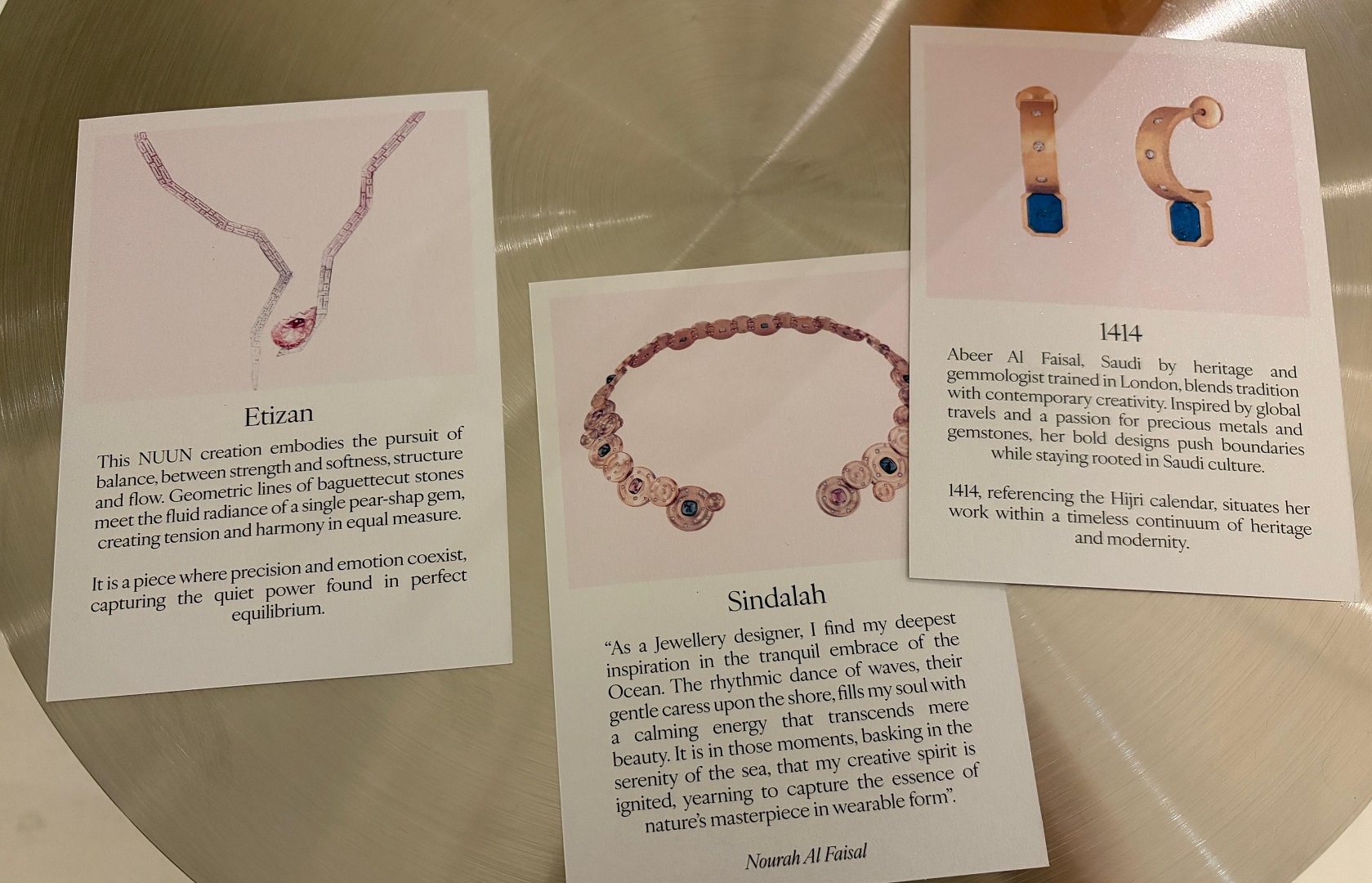 في معرض "نون" للمجوهرات في الرياض، عُرضت تصاميم المصممتين الأميرتين نورة الفيصل وعبير الفيصل؛ لتكون بمنزلة احتفاء بالرسالة المتناقلة، وتكامل الرؤى الإبداعية.