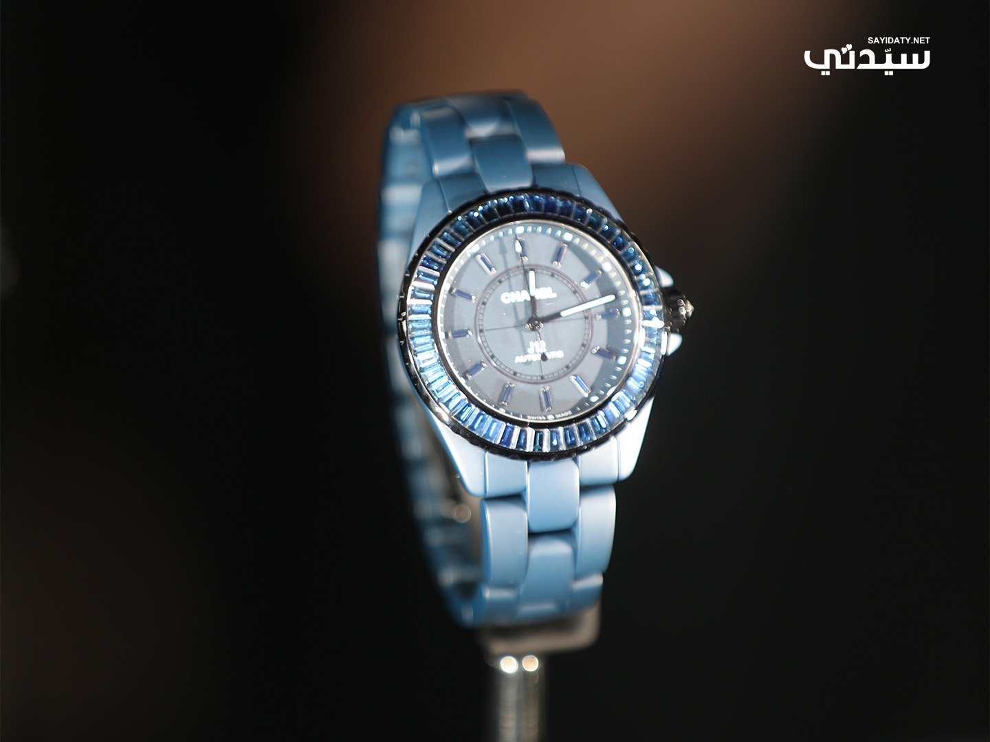 لم يتوقف الأمر عند مينا الساعات فقط؛ فقد رأيناه في الأحزمة أيضاً، كساعة شانيل الزرقاء المبهرة من مجموعة J12.