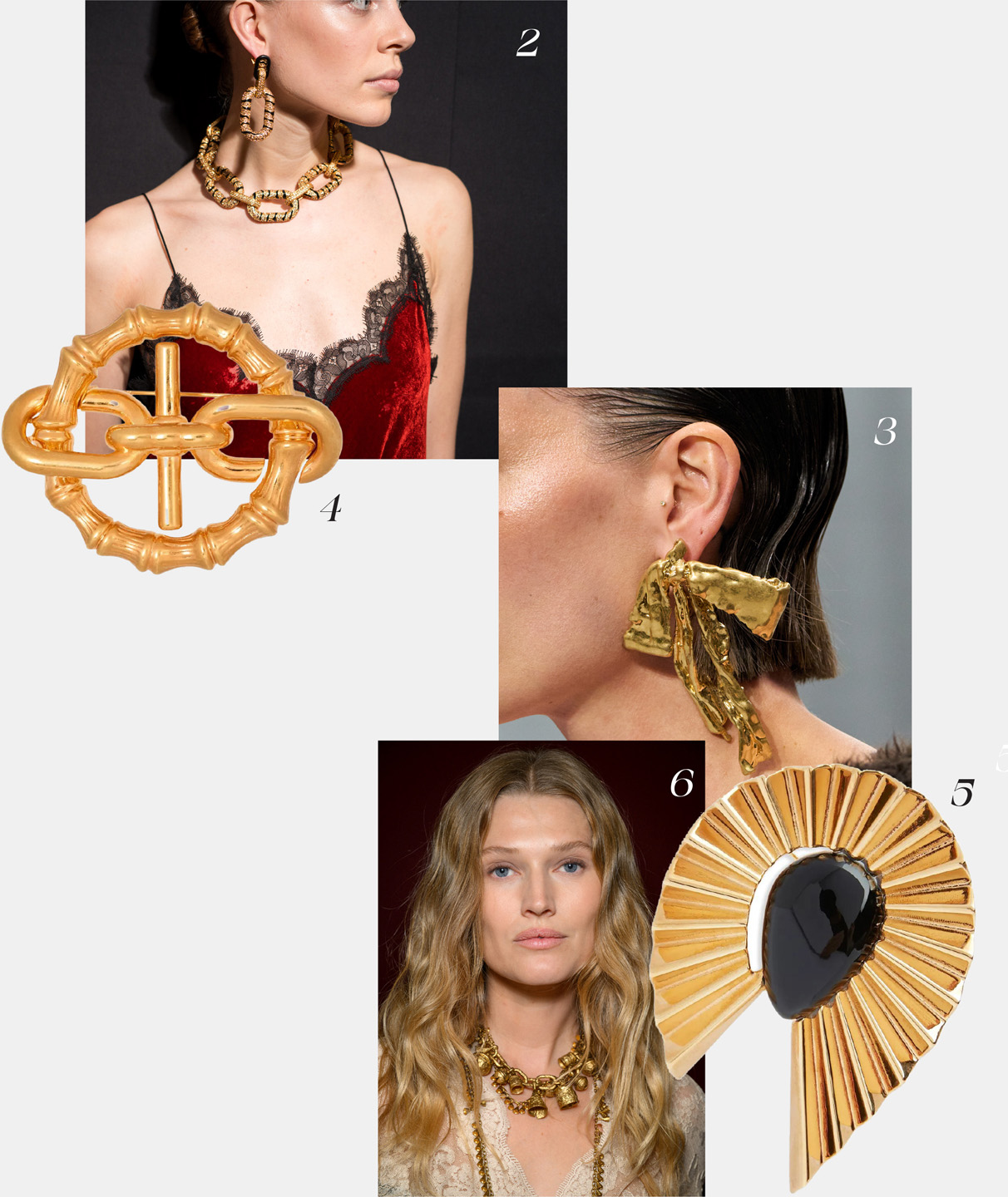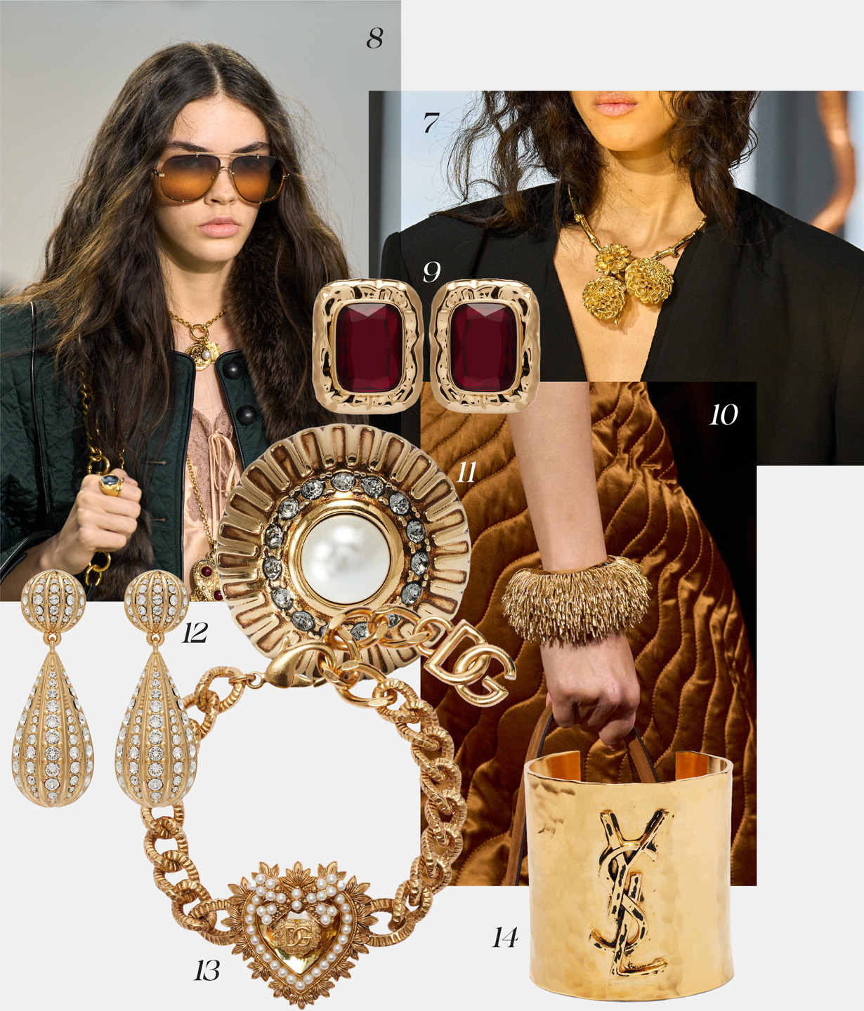 من النظرةِ الأولى، يمكن تمييزُ طابعِ الثمانينيَّاتِ عبر التفاصيلِ البارزة، والأحجامِ المُبالَغ فيها. الأقراطُ الضخمة، والعقودُ المتلألئة، لم تعد مجرَّد مكمِّلاتٍ للإطلالة، بل أصبحت عناصرَ محوريَّةً، تصنعُ حضورَ المرأة، وتُعبِّر عن شخصيَّتها. والإكسسواراتُ الذهبيَّةُ تحديداً بتصاميمها الجريئة، ولمعانها الأخَّاذ، عادت لتكون عنوانَ الفخامةِ والأنوثةِ الواثقة. إنها ليست قطعةً، تُزيِّن العنقَ، أو المعصمَ فقط، بل هي بيانٌ جمالي، يُجسِّد روحَ القوَّة، ويمنحُ الإطلالةَ بُعداً درامياً لافتاً. ومن المعروفِ أن القطعَ الذهبيَّةَ السميكة، كانت في الثمانينيَّاتِ محورَ الأناقةِ النسائيَّة، فالعقودُ متعدِّدةُ الطبقات، والأساورُ العريضة، والـ Chunky Chains، كانت حاضرةً بقوَّةٍ، وتُرتدى بثقةٍ، وتُنسَّق مع أقراطٍ ضخمةٍ، أو Cocktail Rings مرصَّعةٍ بأحجارٍ ملوَّنةٍ. هذه الروحُ نفسها، تُعود من جديدٍ في 2025، لكنْ مع لمساتٍ أكثر عصريَّةً، وبصماتٍ تصميميَّةٍ جريئةٍ، تعكسُ شخصيَّةَ المرأةِ المعاصرة.