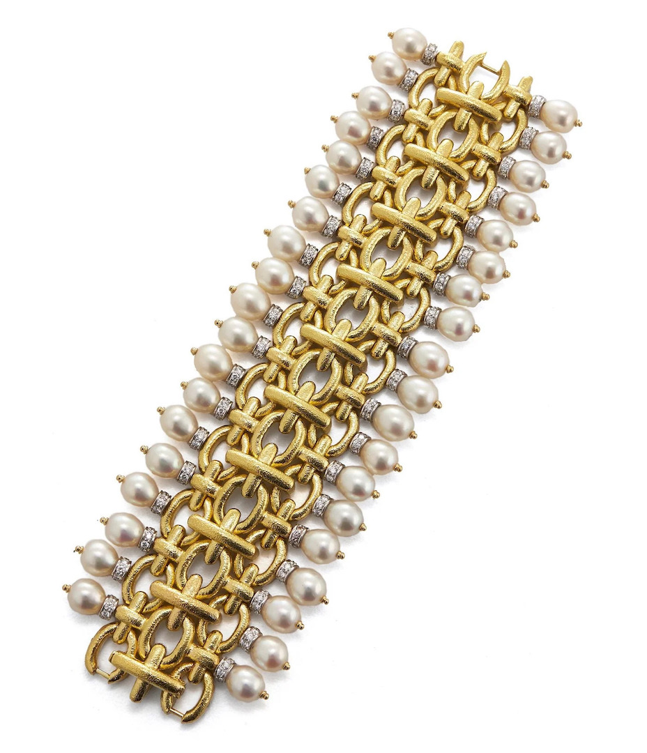 يُعرف البروكار بأنه نسيج حريري فاخر تزينه تطريزات بارزة من الخيوط الذهبية، وهو قماش يتجاوز حدود الزمن والثقافات، ومن هذا الإرث الغني يستلهم سوار Brocade من دار ديفيد ويب David Webb روحه الفنية، ليترجم القماش إلى ذهب.
