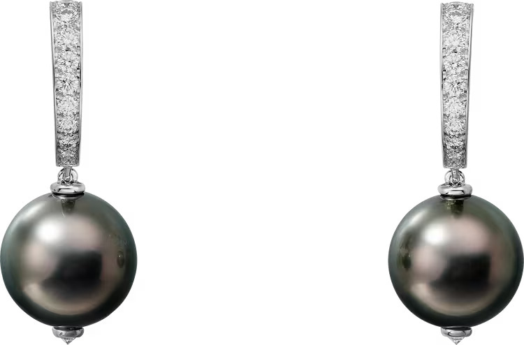 أقراط من المجوهرات الراقية من دار كارتييه Cartier ، تجسّد التوازن المثالي بين الفخامة الكلاسيكية والرقي المعاصر. صيغت الأقراط من ذهب أبيض عيار 18 قيراطاً لتشكّل قاعدة أنيقة تبرز جمال اللآلئ والألماس بانسجام راقٍ.