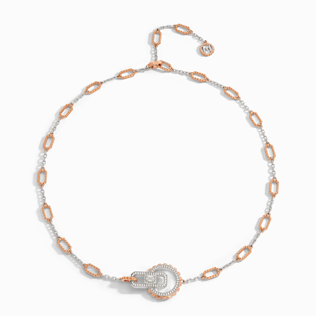 ويتميز العقد بسلسلة إضافية تتيح ارتداء العنصر المرصع الشهير بشكل منفصل كقلادة مستقلة، ما يضفي مرونة وأناقة متعددة الأساليب.