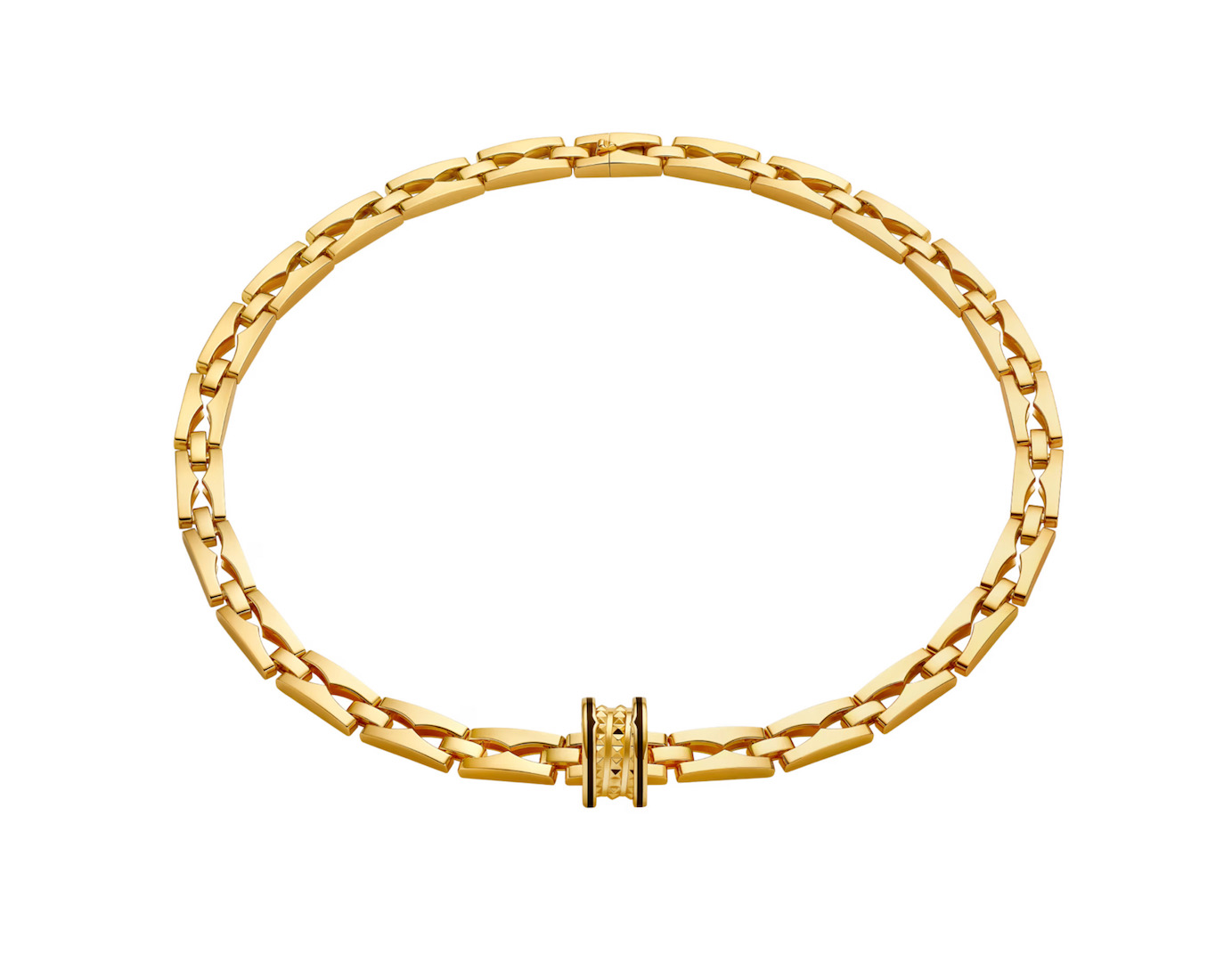 هذا العقد هو تجسيد جريء للرؤية الإبداعية لدار بولغري Bulgari، حيث يأتي عقد B.zero1 Rock مصنوعاً من ذهب أصفر عيار 18 قيراطاً، ومزيناً بقلادة مرصعة بعناصر من السيراميك الأسود. تستلهم حلقات السلسلة المتشابكة الخطوط المميزة لخاتم B.zero1 الأيقوني، لتعيد ترجمة رموز المجموعة بأسلوب وحدوي مبتكر وتصميم غير متوقع، يحمل بصمة أيقونية تتحدى القواعد والصيحات العابرة.
