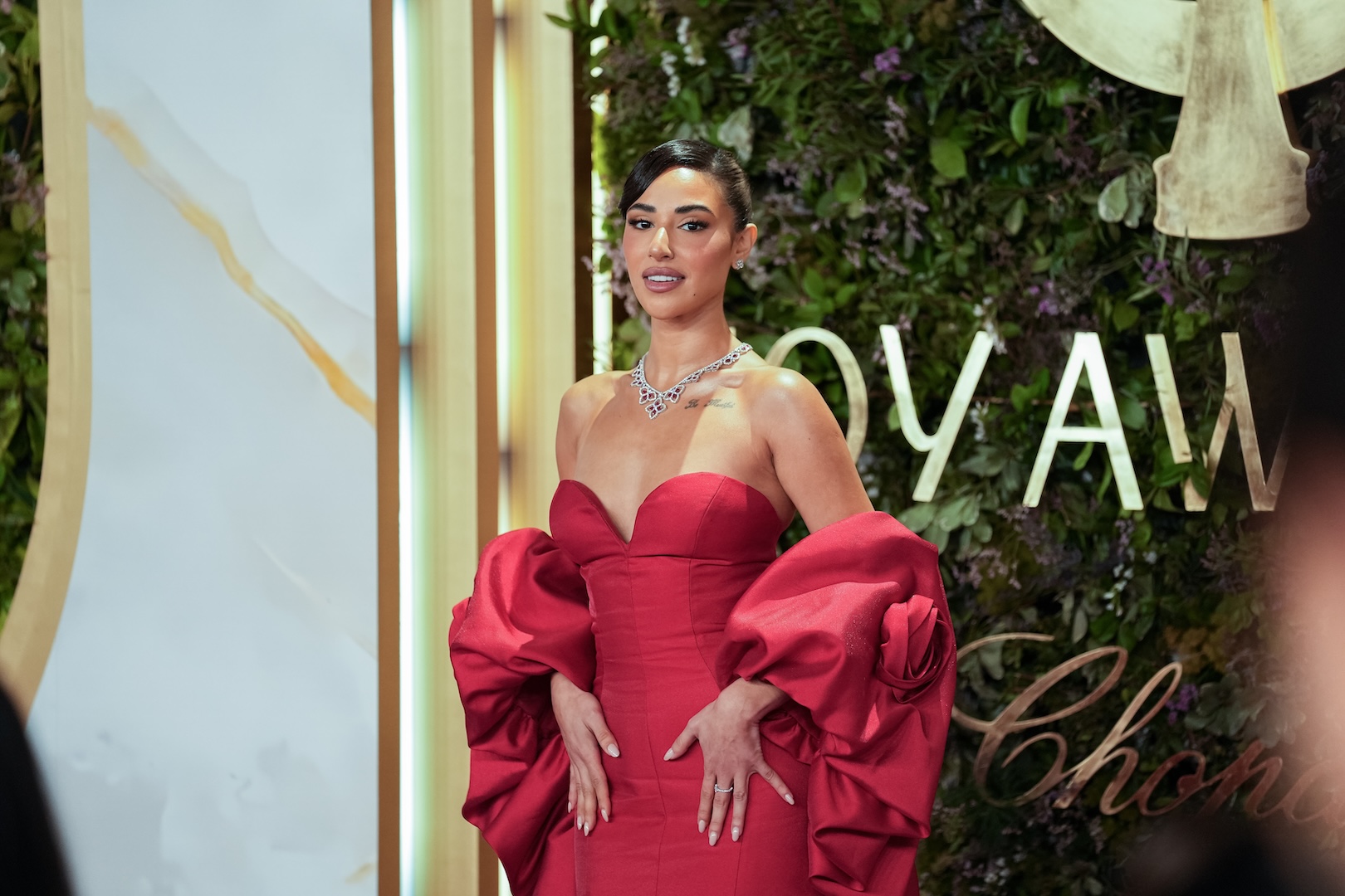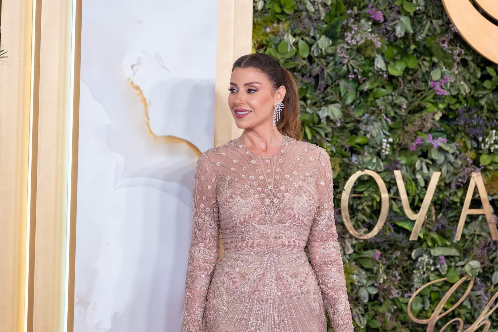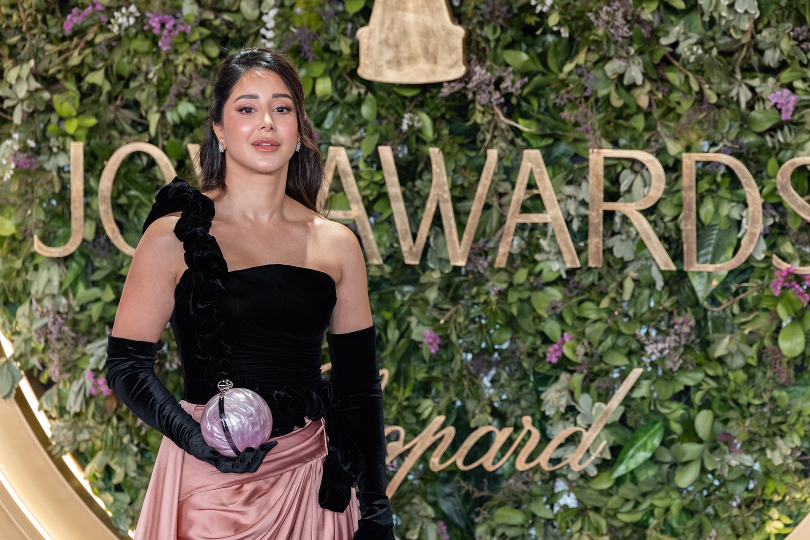 الممثلة وعارضة الأزياء ريتا حرب، اختارت إطلالة رومانسية الطابع في حفل توزيع جوائز Joy Awards لعام 2026؛ حيث ارتدت فستاناً باللون الوردي الفاتح، مطرّزاً بالكامل ومرصّعاً بأحجار برّاقة، من تصميم إيلي صعب. ولإكمال إطلالتها الجميلة، ارتدت مجوهرات من دار نصولي؛ حيث اختارت أقراطاً طويلة على شكل مروحة، تتدلّى منها شراريب مرصّعة بأحجار من الألماس قطع كمثري، بالإضافة إلى خاتمي كوكتيل مرصعين بالألماس من دار المجوهرات نفسها؛ لتترك لفستانها المجال ليلفت الأنظار بفخامته.